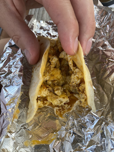 I ate a bacon egg and cheese taco on floor. My taco was okay. The tortilla wasn't the best, it tasted store bought. I'm assuming they're not freshly made. This is okay, but my eggs and bacon were a bit on the dryer side so they means they were over cooked. I will consider giving them one more try however and if you're nearby I wouldn't blame you for getting tacos for here. Just don't expect best breakfast taco I ever ate flavor. However this business is local so please support them at your convenience. There's ample parking for the size of...
