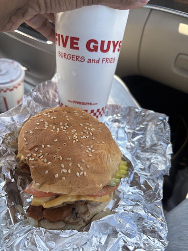 Five guys is no longer the cheap fast burger joint anymore. With cheeseburger close to ten dollars or more (w/bacon), I'd rather spend a few bucks more and get a gourmet burger. That is a general feedback for five guys. Now about this location - service here is slow. We have been here a couple times and each time the service was slow. I can understand if the place is crowded but if it isn't busy it should take longer than 10-12 mins to get me a burger. I was there a week ago around 7 pm, with my family, and received my order in twenty plus minutes even though place was not crowded. There were at least five members in the kitchen area and there was no coordination among the teams. Our (cooked) burgers were just sitting on the table waiting for fries. Grilling burgers doesn't take that long especially when they (five guys) flatten the patty. Frying fries should be non stop or at least be started same time. Overall delivering the burgers should not take more than 10-12 mins for a fast-food place. I used to like five guys for the price-value satisfaction and take family for an affordable meal. Now that burgers are over ten dollars, and service is slow, I will think twice about just dropping...