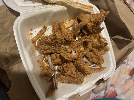 Yet another hole in the wall spot that does chicken wrong. The heat on the cooking oil is routinely set too high obviously as the wings you get are scalding hot. If you attempt to wait for the wings to cool down this excessive heat will cause the breading on the chicken wings themselves to harden creating a horrible eating experience. Then they commit the Chicago mortal sin of placing wings on top of freshly cooked french fries. So your fries suffer from chicken grease crystallization and are inedible. And by the way, if you really love having your chicken cooked in tilapia grease secretly and it tasting disgusting then this place is just...