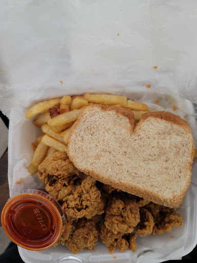 Now back to the food. The gizzards are overbreaded and rubbery. Very tough to chew on which hurts your jaw. I wasn't even halfway through them before I tapped out from my jaw being tired & teeth hurting. They are overseasoned to the point where it burns your tongue. The dinner doesn't come with a drink, but it does come with fries and a single slice of bread.