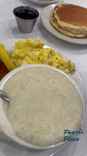 Pearl's Place is an eating establishment, however I have certainly been to far better I must say in all honesty. I seriously doubt that I will be returning there in the future. First of all, they have a dress code which is ironic since the maitre'd, wait staff, and servers were not dresses to impress themselves. As I approached the front door, I noticed the glass wasn't clean, which is a no- no for an eating establishment. Secondly, our party was made to wait until everyone arrived before we were seated. The place was small and mirrors didn't add to actual floor footage. They had menu items and offered a buffet for a certain time frame. The problem was there was one person serving breakfast items, including making omelets etc., and two people serving the lunch/dinner foods. All of the food items were on the other side of the counter behind glass, unobtainable without the three servers. The problem was the lines were long, and various persons from all over the restaurant were in line in no particular order, so we were not able to eat at the same time basically. There was two small pictures of water on the table for a party of ten throughout the entire meal, that wasn't refilled. The food was ok, but I wasn't ready to write home about it. I can take a pass on this one .... street parking only. Don't know about the restroom facilities.