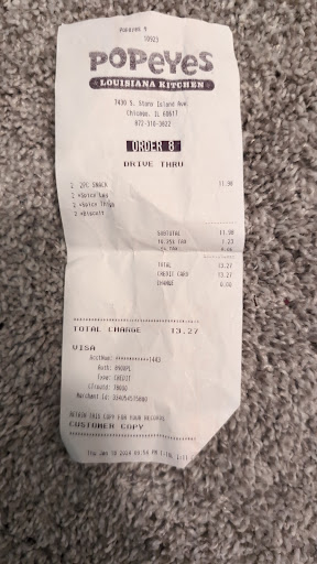 Read moreDO NOT EAT AT THIS POPEYES. EVER. This is the worst Popeye’s in the city of Chicago, and the employees will definitely mess your order up. I specifically asked for a cinnamon apple pie, only to get into my car, drive off and bite into a strawberry pie. I checked my receipt which noted a cinnamon apple pie. I took it back, and the cashier said, “So, do you want a strawberry pie instead?” Mind you, I had just handed her the strawberry pie I didn’t want and explained I wanted a cinnamon apple pie and then asked for a cinnamon apple pie while explicitly saying, “I don’t want a strawberry pie.”