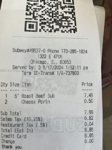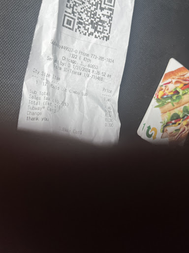Read moreDirty , nasty place . This is my first time visiting this location food was not fresh even though it was morning hours . Asked for my footlong sandwich to be cut an wrapped separate workers started yelling saying I will be charged for 2 sandwiches . Cheap a distasteful Indian male a woman kept saying bags cost 50 cent . Well charge for a extra bag if it's that serious will...