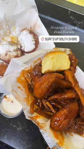 Read moreMy mom and I were so hungry and this was an impromptu decision to stop at Surf's Up South Shore Restaurant. This was our first visit there. First off the service was awesome, as the owner was having to cover the areas of cook and cashier. The food was lovingly cooked to order. While we waited for our food the owner/cook/cashier blessed us with a full serving sample of the Fried Biscuits. OMG ... biting into these warm biscuits was darn near euphoric (I'm not kidding)! To me it was like the perfect balance between a biscuit and donut, with a sprinkling of powdered sugar. I even think I saw and tasted a hint of cinnamon. I definitely wanted more! Next up, we got to sample about a tablespoon full of delicious dirty rice. For my order I got the three wing special. They were perfectly seasoned with the perfect crunch. I was allowed to swap out the french fries for a serving of red potatoes instead. Mmm... these were soft and delicious. Since I love Fried Green Tomatoes I ordered the thin slice, as you have the option of thick or thin. The tomatoes were just right with the seasoning and corn meal. My mom ordered the fried Whiting fillets. I got to tase a piece and it too was delicious. I would eat...