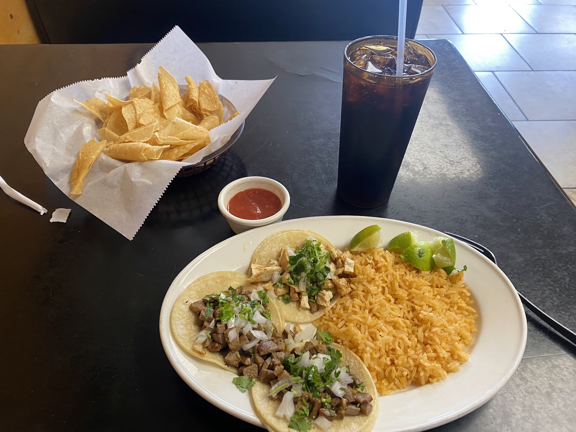 Decent chips, mild (flavor)hot sauce but better than most, got 3 tacos 2 beef one chicken, double rice lunch. Unfortunately the rice was very bland, but cooked properly, it was just missing love. The beef followed suit of the rice, bland very little flavor, I was hoping the chicken would be better but it was even worse. The food was fresh, service was prompt and food delivered quickly. Just nothing to brag about here.. it was very basic. That might be what some people enjoy, me personally I enjoy my spices and strong flavors of the grill.. nothing like that here. Not worth driving out of your way to dine here but solid middle of the road if you’re in the...