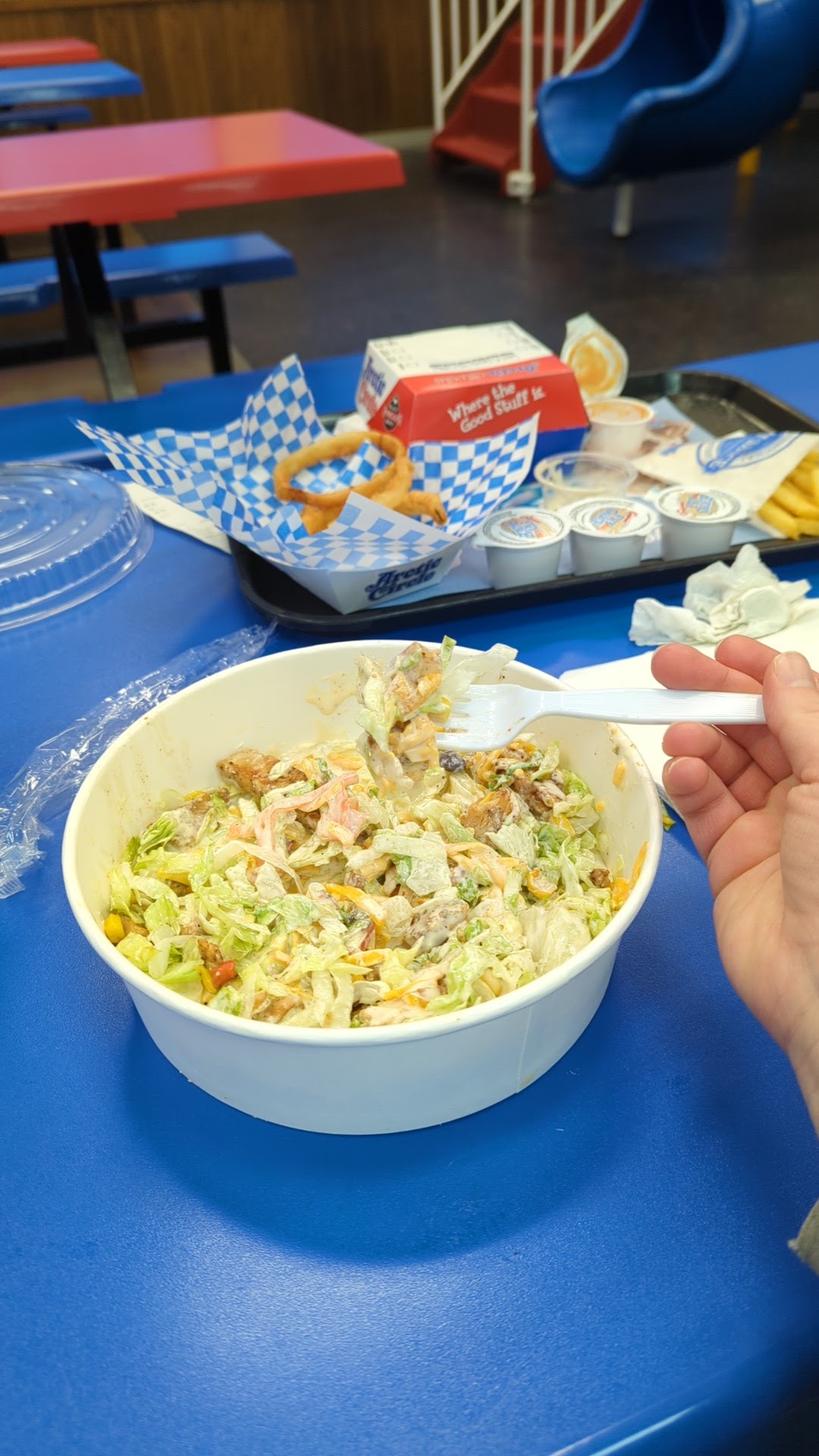 Read moreWe went here to get some ice cream cones for the family. We wanted chocolate, but we're told that they didn't have any chocolate because they were out unapologetically. So we ordered vanilla. We were second in line in the drive-thru on 4-8-24. We were disappointed to start with about not being able to get what we wanted, but then we sat and waited ... and waited.... and waited for the vehicle in front of us to get their food. I trucked out VERY SLOWLY, so slowly that if they got their fries first, they were well on their way to being cold by the time the rest of the food came. How long did that take, you might ask? Well, we don't know because after 10 to 12 minutes of waiting, we gave up and went to the Artic Circle in Shelley. The way it was going, we probably got our ice cream cones faster, making the drive than sitting, waiting in the drive-thru. Shelley makes bigger cones also. When we come to this one because it's closer, the cones are always smaller than the ones we can get in Shelley.