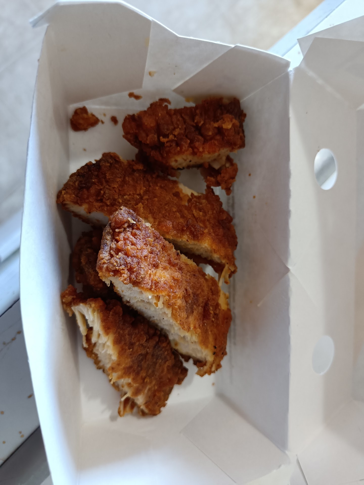 Read moreI stopped and ordered a large 5 piece chicken tenders meal for my daughter and I to share. We waited over 15 mins in line which I normally don't care, however once I got our food got all the way home, which is on the other side of town, opened up the box and I literally was served 1 chicken tender that was cut up into 5 pieces. I called of course she was apologizing and offered a refund plus to remake the food, so I had to again put my 11 month in the car to take the food back so she, the manager at least she said she was, could see but of course once I got back there she had already left and I had to explain myself and what happened again along with of course showing him what i got. I don't even know how a cook even thought that would be ok to serve someone 1 piece of chicken tender cut up into 5 pieces when we are paying $14 for a meal. I will never ever go back to this place. First and last time. What gets me is the lady who claimed to be the manager knew I was coming back and instead of staying to deal with the problem she ran away and had a kid deal with it. That's not a good manager to have, who runs away when there's an issue and cowards down. This place corporate should really take a look at with a manager like that and a cook who thought it would be ok to rip people off of their money that they were willing to spend just to eat. I really hope Corporate will look at this and take care...