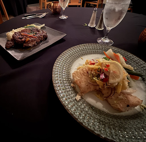 Read moreSo as you all know I’m the 18 wheeler 🚛 truck driver that gos to local place to eat as I was a chef 👨🍳 for 13+ years. Tonight I’m in Idaho falls and eating at the CopperRill it’s a beautiful place it’s a bit high end but has the family feel. My server Liv stated me with the Berry Mojito and recommended the stuffed mushrooms 🍄 with sausage pesto sauce. It’s got a rich stuffing the home made pesto is awesome to top them with just needed a few more minutes as I’m missing the natural juice from the mushrooms cooking down. Now I’m starting with there pear 🍐 and cashews salad with a honey 🍯 balsamic dressing. This was absolutely Delicious 🤤 the tender pear and honey balsamic is a hit. Now up to bat is a chicken 🐓 an tomato 🍅 soup 🍲. Was like when mom made you tomato soup and grilled cheese but what Chicken 🍗 . Now for the main entrée Haddock with mango 🥭 salsa and rice with mixed vegetables 🥕 was not expecting that I was a light and fluffy rice with pickled onions mangos with just a hint of cabbage. Now to end the night with a slice of German chocolate cake that takes me back to one special person in your life that will always be there my Mom that is the cake she always asked for on her birthday 🎉. As I’m on the road driving a 18 wheeler 🚛 now we don’t always get much time home but it’s the ability of something so simple like this cake to remind you of home.