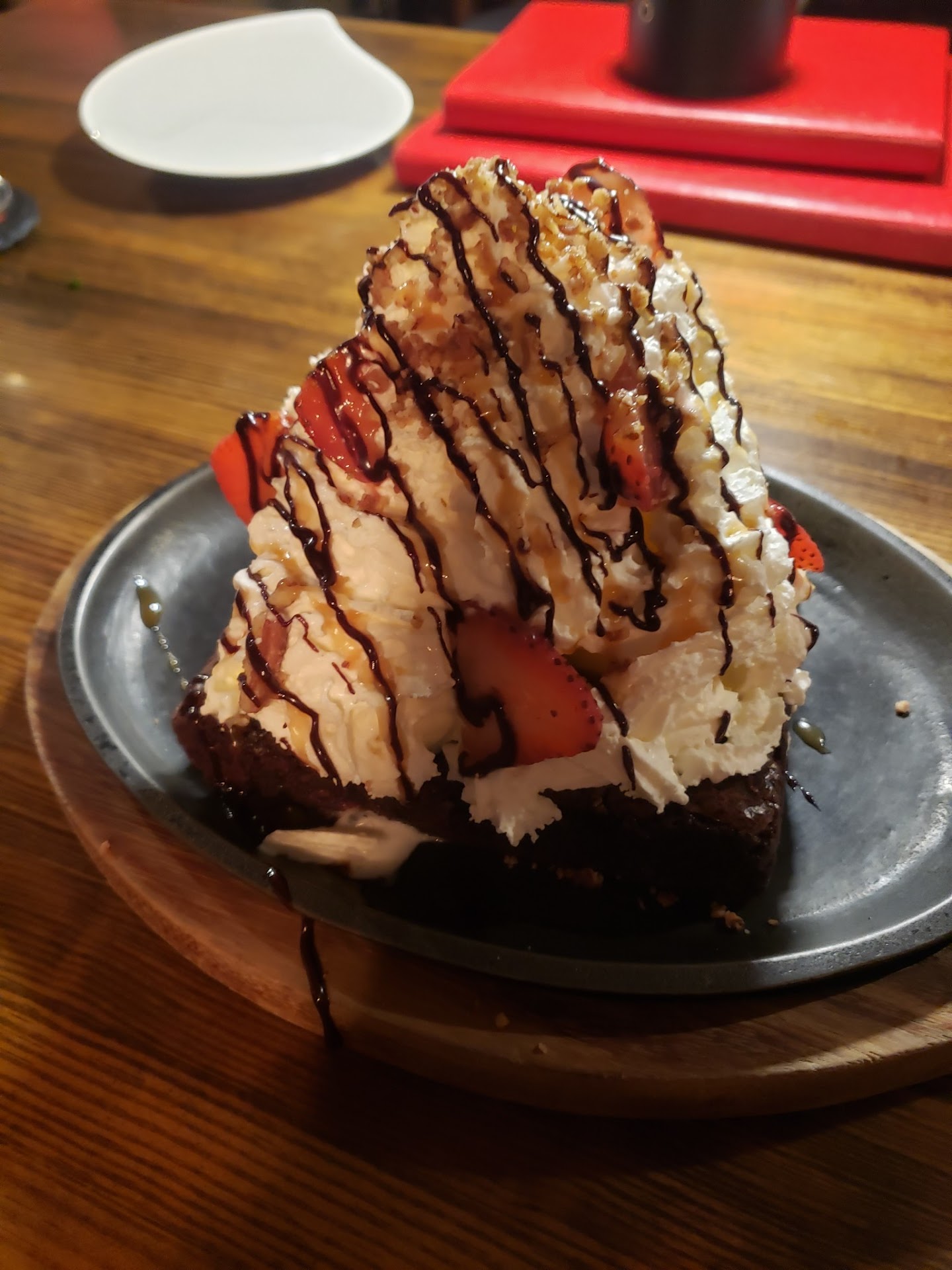 Next, I will review the desert we got, which were Brownie and ice cream, and cheesecake.