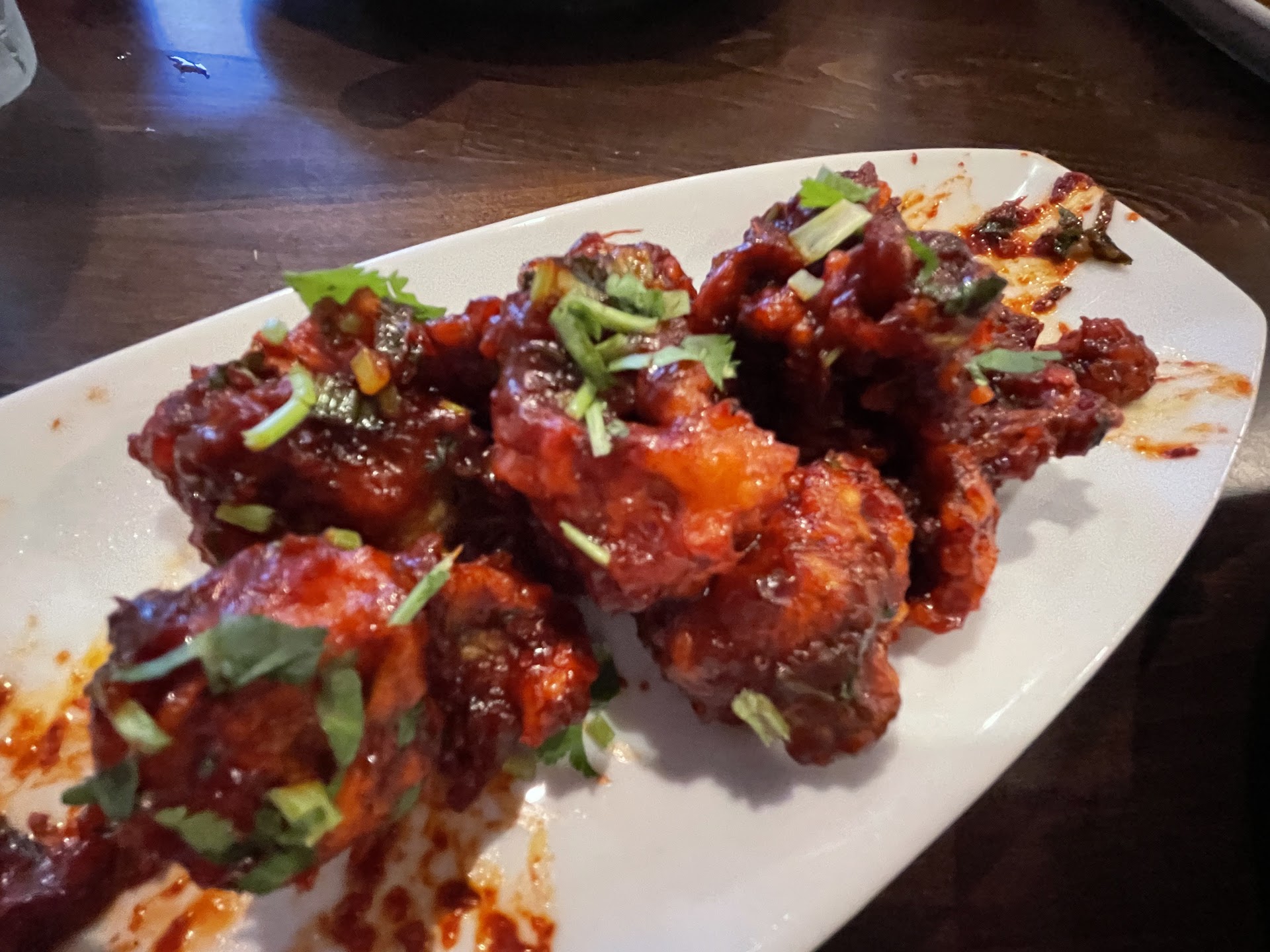 Amazing restaurant. We ate here on the weekend at 4PM. They may require reservations at certain times? We had great service when we went here. It probably helped that we came before normal dinner hours. The restaurant is very nice inside. I believe they recently remodeled. They have been open only three weeks at this point. I believe I saw the owner going around to many of the tables chatting with guests and assisted in serving them. I feel this place offers more service then most Idaho Falls restaurants. We asked what are the most popular appetizers. We chose the Chicken 65. This was the best choice of the day. Chicken 65 is chicken that marinated and deep fried, I think? Then this chicken is coated, no, smothered with some of the most tasty assortment of spices imagined. I must say, the chicken was cooked very well, juicy and not dry at all. For $10, they give you a generous portion of this delicious chicken. My wife and I joked that we would come back one day just to order only two Chicken 65’s each and naan. It’s incredibly delicious and if you don’t try it, you did yourself an injustice. Next, we ordered a mango lassi. They serve it in a cool mason jar style mug. It was unlike any other ones I’ve tried. It turns your tongue yellow, but it’s very tasty so it doesn’t matter. For our entrées, we got Lamb Jalfrezi and Korma Coconut with lamb. The lamb was in large chunks and on the tough side. Knowing now that they cook their chicken to perfection, I probably would’ve just went with the chicken option. The Lamb Jalfrezi was very good, I’ve never had it before so it was fun to try. It features sweet peppers that are stir fried with spices that formed a thick reddish sauce. It was pleasant. The Korma Coconut was my favorite of the two. It was very flavorful. I mixed in the cream that was on top, a little strange but no problem. With the meal they give you rice. The rice is proportional to the number of entrees. I found there be just enough rice if you eat some of the entrees with naan. The naan was good, we got the garlic naan. I did notice that the bowl the entree comes in is smaller than other places. They are the smallest I’ve seen at the Indian restaurants I’ve ate at. Also, I don’t understand how their spice level works. I got one entree at a spice level of 8 and the other at the spice level of 5. The 8 wasn’t very spicy and the 5 was a lot more spicy. Overall, this is great restaurant. I’m glad I don’t have to go to Tandoori Oven anymore for good Indian food. I recommend this place. Above all, I recommend...