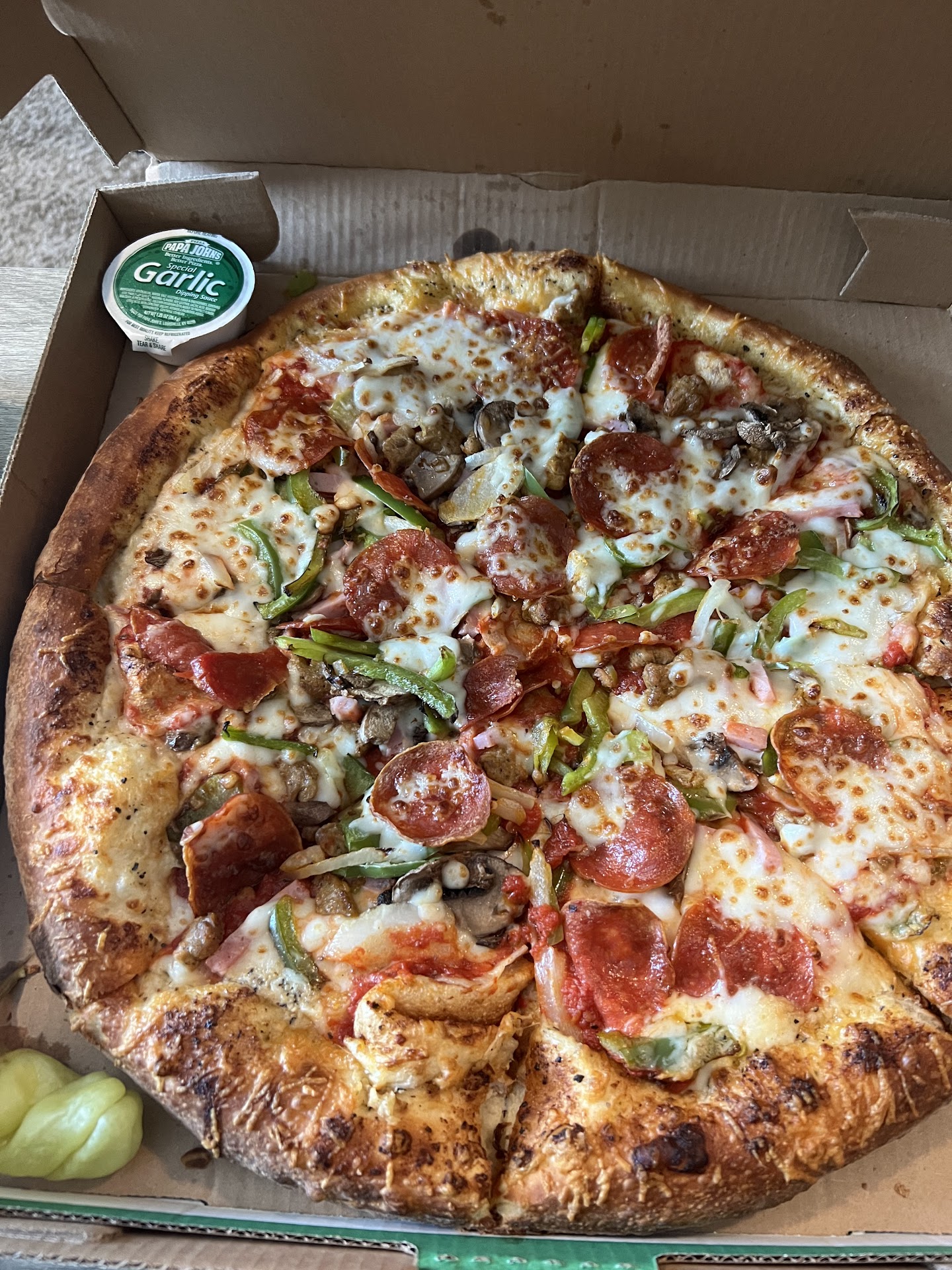 Read moreI like Papa John's, but this location needs to get it together. I order from here quite often, because the pizza is good. The service is lacking though. When I order I have become used to the pizza coming with a complimentary garlic sauce, papa john's spice packets and a few red pepper/parmesan packets. I specifically order three extra sauces as well. Consistency is completely out the window for this location. Sometimes I get everything I ordered and then some, but most of the time they forget my sauces all together... They need to do better. Today, I ordered my pizza and three extra sauces. The Papa Tracker failed to provide me with much of anything except to make me upset with Papa John's once again. Order said it would be 36-45 min, I got my pizza an hour later, while the tracker failed to provide any helpful information. No complimentary garlic sauce, which I guess I can live with, but of course my pizza is cold this time and looks as though the driver threw it into his car on the way to deliver it. I highly recommend, if you want to enjoy Papa John's, you go pick it up yourself, so you can make sure it is taken care of on the way...