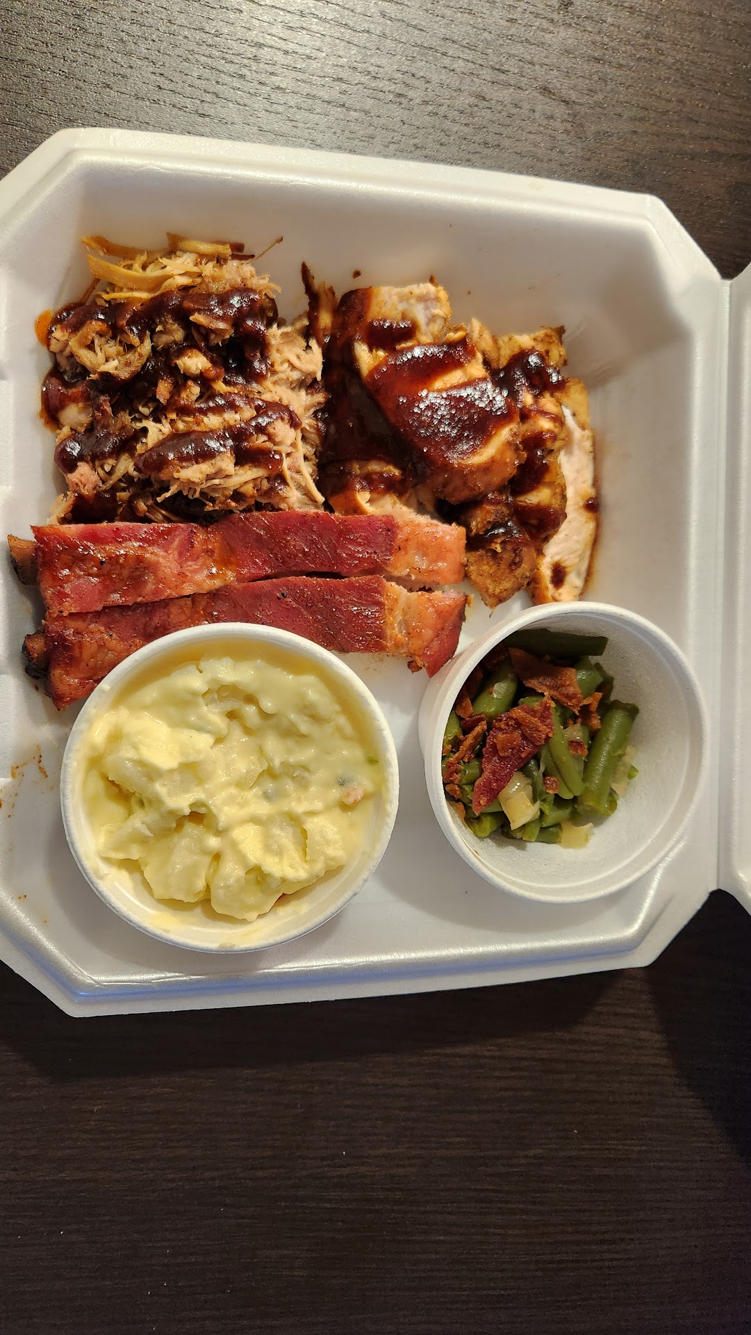 Ā Ā Ā Read moreOk from bbqār to another an honest review. This review is based on this experience alone, because this was the second time I tried it. Here goes, let start with the mediocre seasoning on the brisket, it had some beefy flavor but lacked any kick of spice and salt was practically nonexistent, a healthy amount of salt allows a lot of other flavors to pop! Beef tallow is the king of brisket ingredients and didnāt taste any of it. Tender for sure and cooked to the perfect consistency not fall apart but āhangs ā and pulls perfectly! The ribs were a complete fail in the aspect of āgot the end rib with ābitsā so it was try and hard as shoe leather (the end rib should never be sold). Although the salt was great and the spices came through, I look forward to trying them again. I canāt say about the tenderness so moving on. THE GOODā¦the candy bacon is awesome, it has a good amount of sweetness and smokiness to seasoning ratio, I donāt know if it jalapeƱo and black pepper that I tasted, but I really liked it!! Itās my personal preference to have it cooked less, but hey! Itās not my cooking. The Mac & cheese was good and you can tell they used real cheese because of the grainy texture. I would like to see a little more salt to bring the cheese flavor out a little more, but it was good and would eat it again. NOWā¦the beans, where do I beginā¦THESE ARE THE BEST BAKED BEANS I HAVE HAD IN A LONG TIME!!!! Not overly sweet, and balanced with the right amount of smokey and spiced to perfection!! (What am I saying, just get them, I canāt even make them this good).š The cornbread, iis really good and enjoyed it every time, personal preference once again would prefer it a little thinner to soak up the butter and honey a little better, but itās not my cooking so no complaints. The chicken, for me was tough and dry, but thatās bbq chicken no matter where you go, if itās not piping hot out of the smoker and served, thatās just the way chicken is when smoked, just live with it. The sauces!!! Yum 𤤠theyāre all good and you should get one of each to try, canāt go wrong. OVERALL, Iām going to keep trying the menu, no one is perfect, but theyāre better then the bbq places Iāve been to in Boise, who claim to have the best. So give them a shot and judge for yourself, cause this is...
