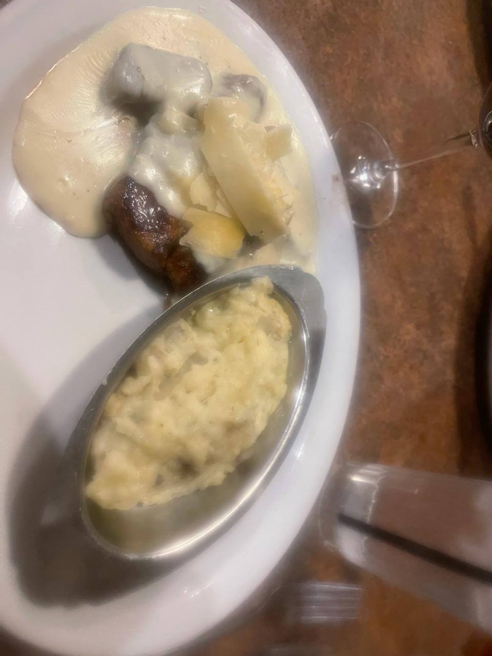 So I went back again for dinner. This is a steak place obviously so I order chicken of course. The Captain’s Chicken because it sounded so good. The sauce flavor was amazing and the garlic potatoes were not like any I have had before. Unfortunately though I cut into the chicken and it’s tough, but I taste it and it’s chewy. I tried the other piece of chicken and same thing. Maybe overcooked, freezer burned. I was disappointed and the waitress was super nice offering to have another made but I was just a little grossed out and didn’t want more chicken. I did keep my mashed potatoes though. I also got a strawberry mango daiquiri and you could really taste the strawberry flavor which tasted amazing. Like frozen strawberries not just artificial flavoring. My friend had the filet mignon and this was perfect. It melted in your mouth and was cooked to perfection. Went great with my potatoes too.