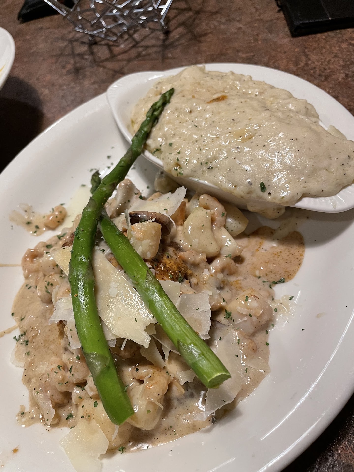 So I went back again for dinner. This is a steak place obviously so I order chicken of course. The Captain’s Chicken because it sounded so good. The sauce flavor was amazing and the garlic potatoes were not like any I have had before. Unfortunately though I cut into the chicken and it’s tough, but I taste it and it’s chewy. I tried the other piece of chicken and same thing. Maybe overcooked, freezer burned. I was disappointed and the waitress was super nice offering to have another made but I was just a little grossed out and didn’t want more chicken. I did keep my mashed potatoes though. I also got a strawberry mango daiquiri and you could really taste the strawberry flavor which tasted amazing. Like frozen strawberries not just artificial flavoring. My friend had the filet mignon and this was perfect. It melted in your mouth and was cooked to perfection. Went great with my potatoes too.