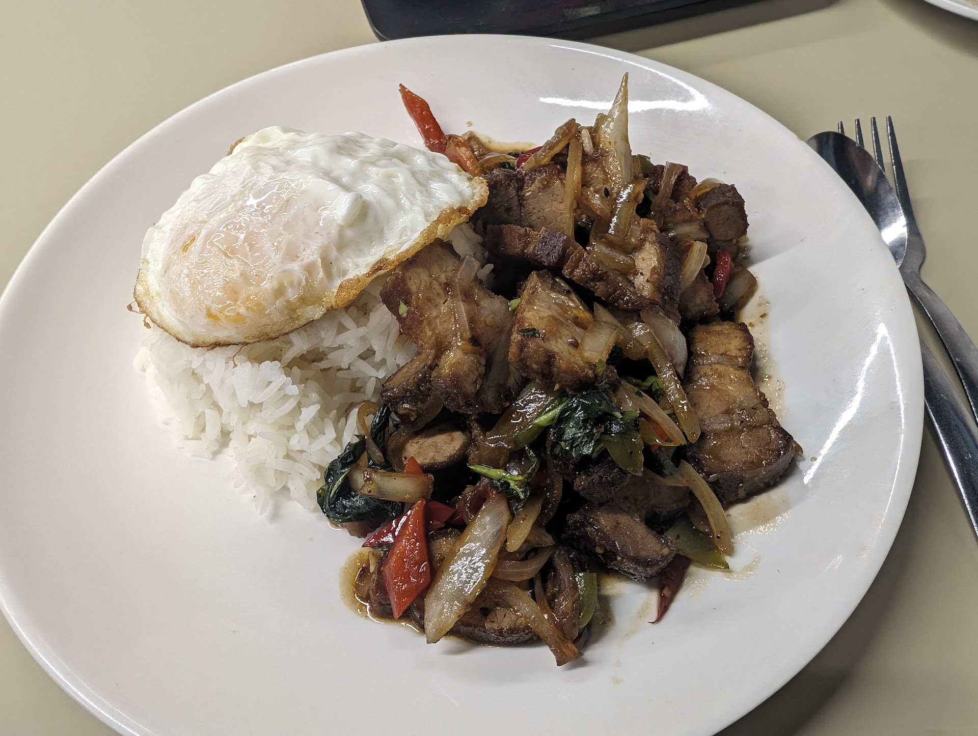 Ā Ā Ā Read moreA very nice Thai food diner. The dining room was extremely clean with good seating and good parking opportunities. I was greeted in a friendly manner when I entered. My landmark dish at a Thai restaurant is chicken red curry. More than moderately spicy. This is the first time I'd been and then prices are very reasonable. Emphasis on the word very. You could order your red curry on a scale of 1 to 5. One being very mild, and number 5 being painful. It warned that a number 3 was hot. I'm pretty heat tolerant so I had a number four. They were not lying about the heat level. Number four could take your breath away. Aside from the heat level, the curry was excellent. It was Rich and creamy with no clumping. I ran out of rice before I ran out of curry sauce so I ordered another rice dish. The rice was entirely reasonably priced also. I'd like to go back again. This time I would order a number three and take them at their word. Perhaps one day when I feel masochistic, I will go in and order a number five. Stay tuned...