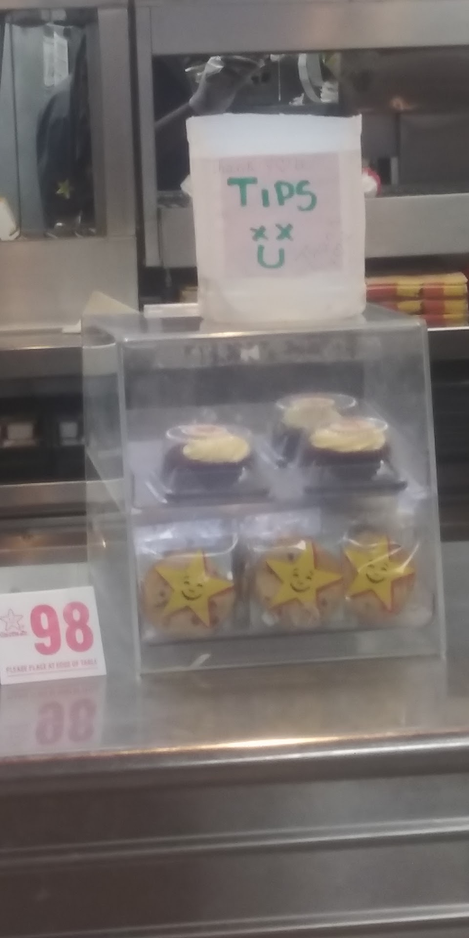 Visited a few weeks ago. We were traveling through the area pulling our camper. As we pulled in to the parking lot it appeared there was no indoor seating or ordering. As we pulled around to the drive thru lane we discovered our rig would be too tall (some drive thru's we fit in and some we don't). As my husband pulled our rig around the outside of the drive thru lane I jumped out to take a look at the menu anyway (we don't have Carl's Jr in our area). There weren't any other cars at the time so I was yelling the menu over to my husband. As another car pulled up I started to move out of the way and we were going to leave. The lady in that car rolled down her window and said no it's ok go ahead and order. I explained to her that because I didn't have a car in the lane it didn't seem to trigger that I was there. So she said I'll pull my car up and you order. (Omg that was so nice). I placed my order and walked around to the window. My husband pulled up with our rig and I stood between the window and our rig. I was worried I would be told I couldn't do that. I was very cautious to keep my distance, same as if I was in a car. Thank you to the lady in the car behind us and thank you to Carl's Jr for allowing us to complete our transaction in this way. Food was excellent and we would eat...