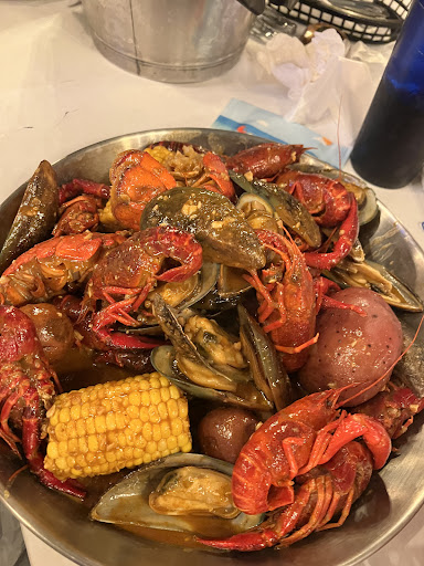We arrived at 8 PM on a Saturday night, and the waiters seemed busy. There was a party of six people waiting to be seated, but they were kind enough to take us first since we were a small group. O'crab was clean and bright, and the atmosphere was reminiscent of a cross between Bubba Gumps and Red Lobster, but with a really nice ambiance. We were taken to a section with only three other occupied tables, so it was slower than we expected, but we assumed we had missed the dinner hour. There were some other tables on the opposite side of the restaurant.