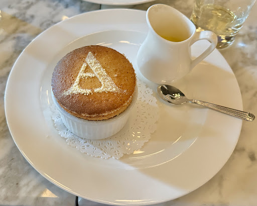 For dessert, we ordered a couple of Pistachio Soufflés, which were served with tiny pitchers of crème anglais. What's not to like?