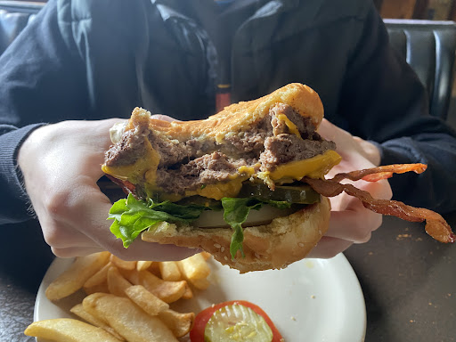 Read moreAbsolutely delicious! I usually say hamburgers are pretty much all the same but the Just A Burger I ordered was juicy, flavorful, and served hot with plenty of steak fries. I ordered deep fried mushrooms and they were great also. Even better, for truckers there's a place to park right next door. Glad I stopped...