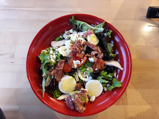We have been to this location many, many times. On our way in, we noticed it was dead inside...which must be due to the lack of college students in the area during summer. We thought, SWEET! It will be clean and quiet and how nice will that be?? We were greeted by a nice guy ready to take our order. He was not pushy and did a great job starting our order. That was the only nice part of the experience, so kudos to that guy! We got our salads and drinks and walked over to fill our drink cups. 2/4 of the infused juice containers were empty, and the other 2 were half full and looked filthy on the inside...it was gross. So we opted for soda. We looked around the dining room, and only ONE CUSTOMER was eating at a table. Yet all of the tables were filthy. I'm talking grimy, sticky, and just gross. We picked a booth and sat down. Our table was sticky, and the bench was dirty. I looked around and noticed that every single table and chair was gross. The chairs had messy fingerprints that would take quite a while to accumulate. The soda counter with the flatware was dirty, and you could see that even the containers holding the "clean" flatware were also gross. We ate our food while trying not to touch the table, lol. All while watching 4 employees joke around and stand behind the counter. Not a single employee entered the dining room to wipe a table, tidy chairs askew, or gather the stacks of trays. It was surprising because it was THAT dirty in there. I'm bummed because I love Cafe Zupas, but unfortunately, we won't be back to this location...