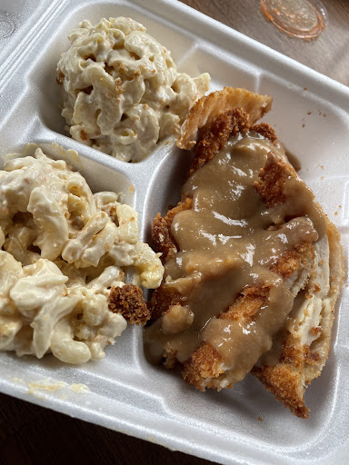 I ordered the Kalua Park Plate (savory pork with (or without) cabbage) with a side of macaroni and gravy ($8.45 for small), my husband the Chicken Katso also with a side of macaroni and gravy (panko breaded chicken breast, $9.55). We decided to take our food home. The second I opened the boxes, I was unimpressed. I'll spare you my very descriptive and unappetizing statement (something about the remarkable resemblance to wet cat food), but to be blunt, I was appalled. It was soggy mess of a few pieces of pork with way to much cabbage. I took one small bite and couldn't stomach anymore. Even my husband exclaimed "what the actual f*."