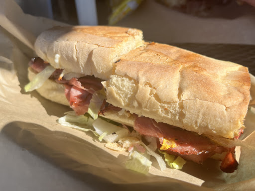 The sandwich: It was hot and wrapped in aluminum foil when I got it. It took me ten minutes to get home. When I took the first bite, the bread was soggy in the inside and crunchy outside. There was sufficient fill of the grinder.