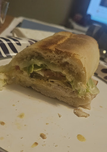 I ordered a turkey & cheese grinder to go. It comes with tomatoes & mao. I asked for lettuce, pickles, mustard & they obliged. It took 15 minutes to get the sandwich, so I had plenty of time to look around. There is zero ambiance and a cafeteria feel.