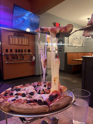 The restaurant has a modern look, which drew us to it. We crossed the street and into the Pizza place we go. This place is much more than pizza! They had many televisions playing football and pleanty of seating. There is a large bar in the middle. Seat yourself and the menus are already on the table so you don't have to wait. Our server brought us water, with no ice, and asked us if we wanted anything else to drink. We did get ice when we got a refill.