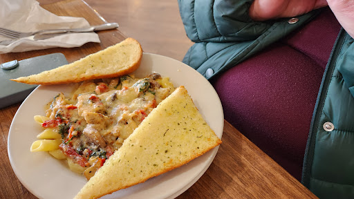 My daughter and I went for our usual late lunch. We waited 10 minutes and no one was around. A door dash driver came in & waited with us. I opened and shut the door several times but no one noticed. I peeked into the kitchen and it was empty. Finally a man who turned out to be our waiter walked out of the bathroom tucking in his shirt and it appeared he was hooking his pants. If we hadn't been really hungry and looking forward to my favorite meal I would have left. This time the service was very slow, he got our order wrong so we had to wait for the fix but he acted like he didn't believe he got it wrong. Then after complaining even the manager said the salmon was half the normal size so he had them make another small piece. The waiter forgot our plates, our bread & didn't refill our drinks until I went looking for him each time & asked for all these things. The food was not at all the same. The pasta was dry, sticky and along with the vegetables were covered in so many huge poorly chopped chunks of garlic I could taste nothing else. I get the same thing everytime. It wasn't at all the same. I wish they would let you know when long time regular menu items have recipe changes. I became ill immediately after eating a small amount and I was fine before I ate. I've never had this happen eating it before. Having many allergies I figured they'd changed some thing so we checked. We were told only the extra garlic but there wasn't any sauce like usual either. It was very different than what I'd usually had. I can say the salmon was still pretty good & although smaller and more cooked than usual the brie kisses tasted ok too. In my opinion it was over priced for the poor food and service. We missed the great food and service we used to get. We overheard the new manager wondering what our problem was that he was only a little slow. The waiters we've had before were great. When a certain cook was there the food was great. The others were just ok. But this time the food was horrible. We were regulars but won't...