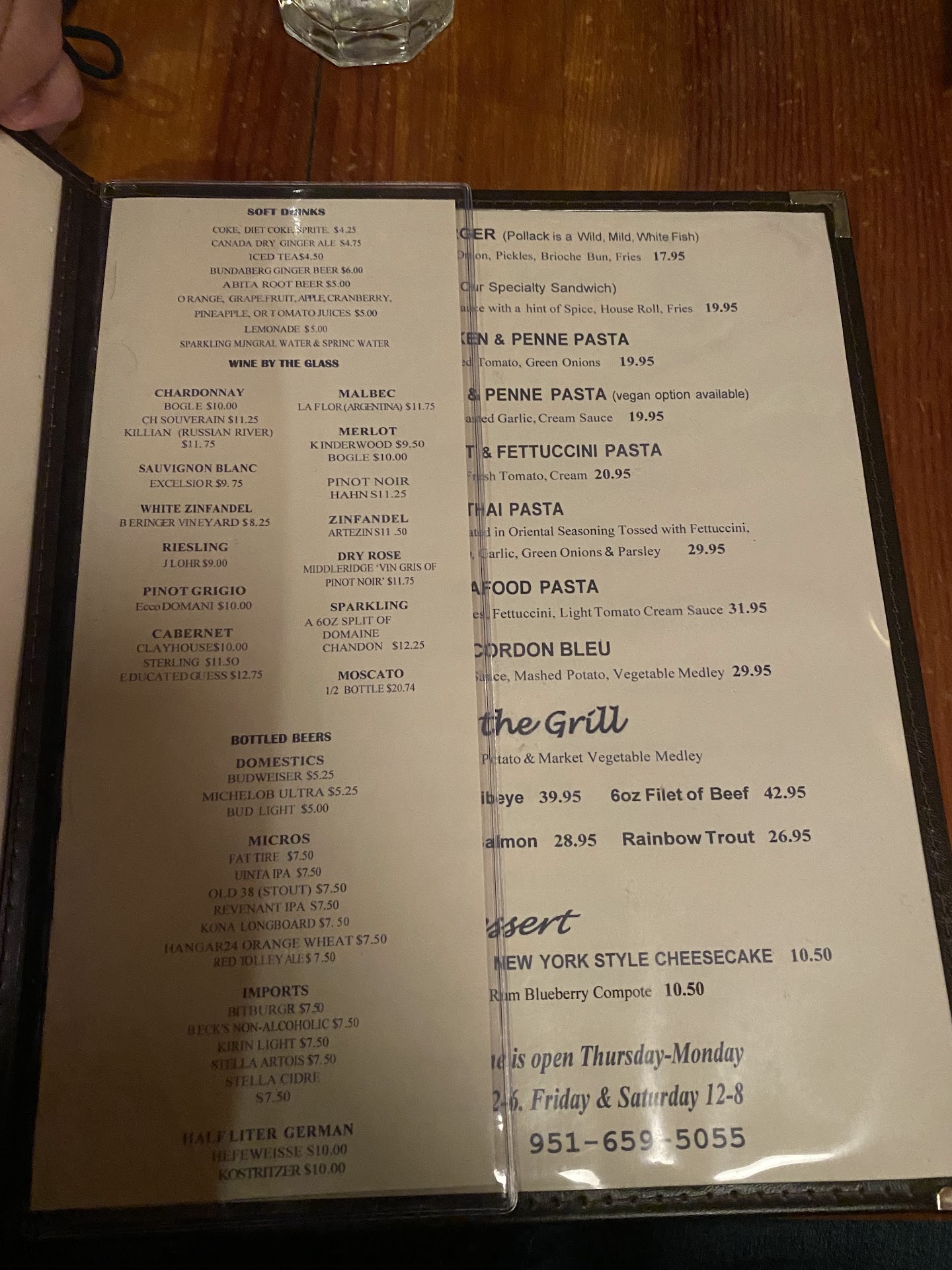 Went here on a Monday, 19July21 for lunch w/3 other ppl. Got there a few minutes before noon, after making the 1 hour drive, over a mile up the mountain from Palm Springs, and actually had to wait 10 to 15 minutes to be seated (behind 3 or 4 other small groups of ppl in line at the outdoors host station), while the wait staff, some frantically others not so much, finished wiping down & setting up the outside dining patio area; tables, chairs, umbrellas, wait/service station, etc. Their opening time, every day they are open, is 12:00p, so maybe that's when the wait staff arrives as well? Not sure, but found it slightly odd that we had to wait to be seated, which btw was not an issue for me, but my gf's dad was suddenly not feeling well, had to find a shaded area around the corner to get out of the sun and leaned against a wall where he was able to collect himself. Anyway, besides that bit of unexpected experience, our drinks and food were just fine and our waiter was friendly, apologetic, and offered great advice & recommendations on both food and drinks. Oh and we did sit outside... the weather was great, right around 80°F, slight breeze, which was just fantastic considering it was 40° cooler than where we were just an hour prior. (Palm Springs in late July is no joke, and I'm a N'awlins boy, used to the heat & humidity, but 121°F w/low humidity is still 121... like on 🔥 hot). I'd definitely try this place again, next time I go to PS... Interested in having...