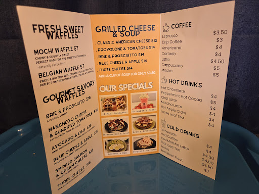 Read moreTried this place we'll hear on assignment a couple of my guys from the truck. Their tea is amazing You should definitely give that a try It was just plain iced tea I enjoyed it. We all tried variations of their grilled cheese and we were not disappointed by any of them The food was delicious. They also have waffles we did not get a chance to try those unfortunately but I bet they're delicious too. They have an array of different drinks and coffees as well. Stop by give this...