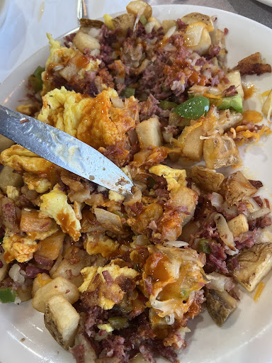 Read more8/9 One of the worst experiences that I have had in a long time. Was seated fast as, should have been considering we were the only people there. Food arrived at a normal pace. But, once food arrived grits were cold eggs were prepared wrong. Server was no where in sight for about 10 minutes!!! Actually I had to flag down another server to find ours (we were the only people there) she removed the grits microwaved them and brought them back by then the under-cooked eggs were cold! What discussed me the most was tha stinch from the cornbeef hash the appearance looked like dog food. I didn't eat anything, I almost puked!!!! Once again looking for the server to get the check. Had to flag down another server again. It was very clear I didn't eat. She didn't ask if things were ok but, had the nerve to ask if, I wanted a box.. what a joke how about a refund.⛔STAY AWAY FROM...
