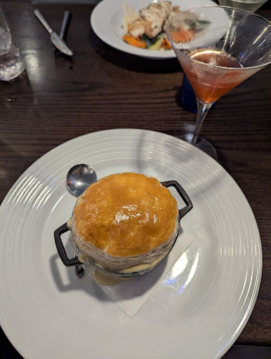 Our party of 5 came in for lunch and were greeted by a friendly gentleman who seated us in a nice comfy booth. Our waitress was knowledgeable and super friendly!!! She explained the Daily Specials including homemade soups. We started with an order of Calamari and Fried Pickles! Delicious! Our main course included Gus' famous fish fry, Shaved Prime Rib sandwich, Southwest Chicken Flatbread, Gus' Burger and Cedar Plank Salmon! Our food arrived steaming hot and every bite was mouthwatering! Their homemade Clam Chowder is the best I've ever had! For dessert we shared the Chocolate Ganache Cake, Carrot Cake and fresh salted carmel gelato! Absolutley decadent! If you're looking for clean, friendly restaruant with the freshest food in town, then you must try Gus' Grille! I hear they have a new "Happy Hour" menu that inclues Bang Bang Shrimp, Greek Pork Skewers, Merkt's Cheese and Crackers and much more all for under $10 each! Thank you for an amazing experience Gus' Grille!! See you...