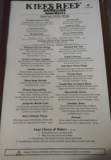 Read moreI went to Kief’s reef for the first time tonight for their fish fry. When My and husband I got their the place was packed. We requested a table for 2. The hostess stated that she could seat us in 10 minutes but we would have a hour wait for our food. We decided that would be fine. After 10 minutes the hostess attempted to seat us at one of the high tables. I explained to the hostess that I could not sit at the high tables due to a nerve injury to my back that causes my legs to go numb she was so nice. She apologized (she had no reason to apologize) she immediately found us another table, Our waitress was awesome. She immediately took our drink order and brought us out hot bread. I had the fish fry my husband had a burger. She immediately brought me a plate for the salad bar. It only took our food about 30 minutes to come out. The fish was perfect. The cheeseburger was perfect. The hostess frequently checked on us. She offered me more fish but I was full. The customer service was above and beyond. The food was great. The hostess was wonderful. Usually, I get an eye roll or well this is the only table we have and I end up standing at a high table for my entire meal. That was not the case at this restaurant. I appreciate the hostess being so polite, accommodating, making me feel comfortable, which allowed me to enjoy my dinner. The bartender was attentive, the hostess, and the waitress was so wonderful. This will be my new Friday night go...
