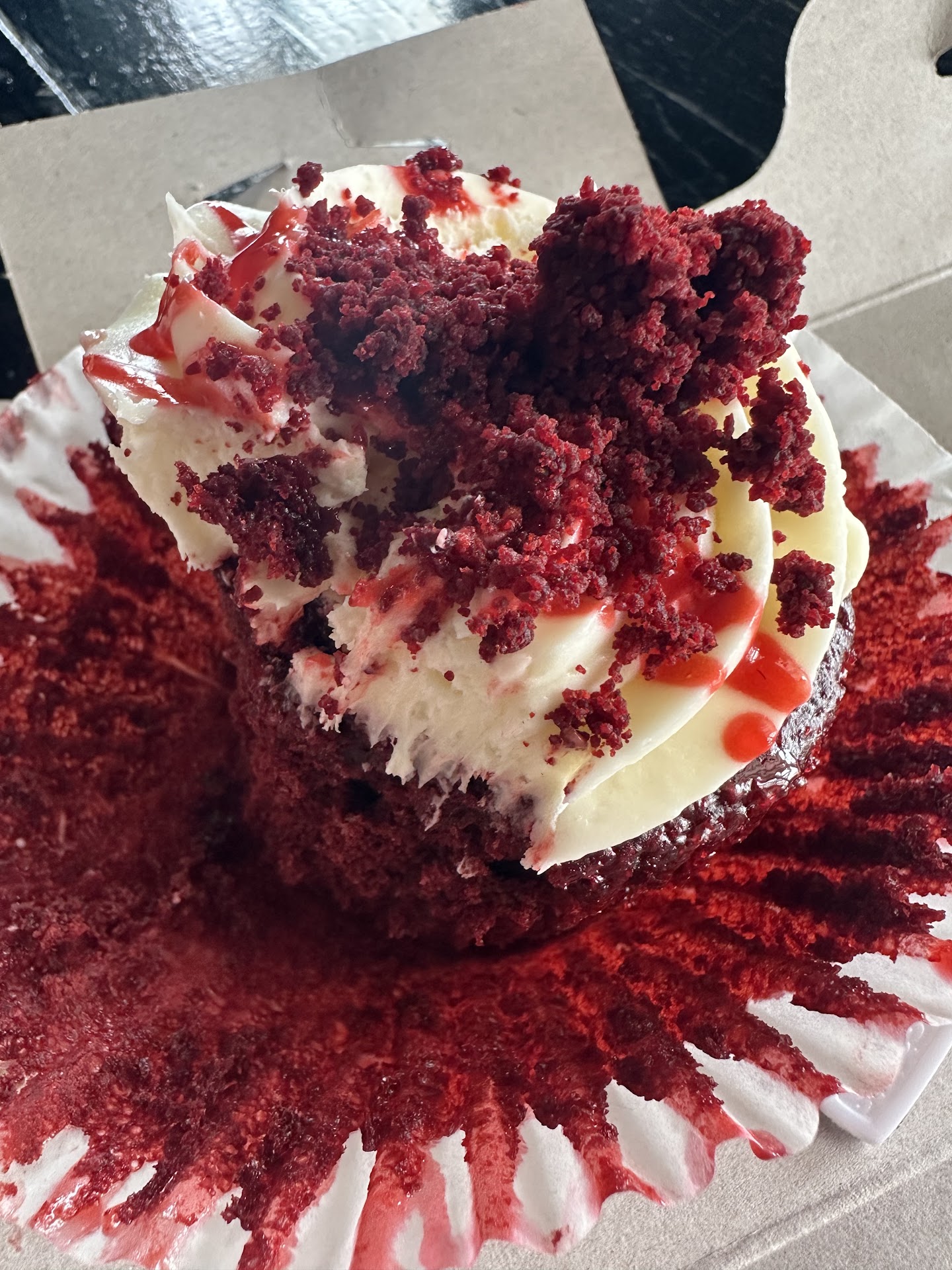 I went on 5/16/19 around 2:40 and the dark haired girl at the counter was very rude. She served us old tasting cupcakes. She liked to hold them in front of her and had a conversation about allergies close to her mouth and wouldn't put them down. She really wanted us to have them to go since she didn't ask. She just wanted to put them in the box she said. She got rude about it when I said I was going to eat outside and then she used the forks to make me feel stupid. If you want your guests at your party to eat these desserts, I hope your guests like harder cake with cake parts separating in your mouth whole. The frosting gave me a stomach ache so prepare for a horrible reaction from your guests after they force the last bite in.