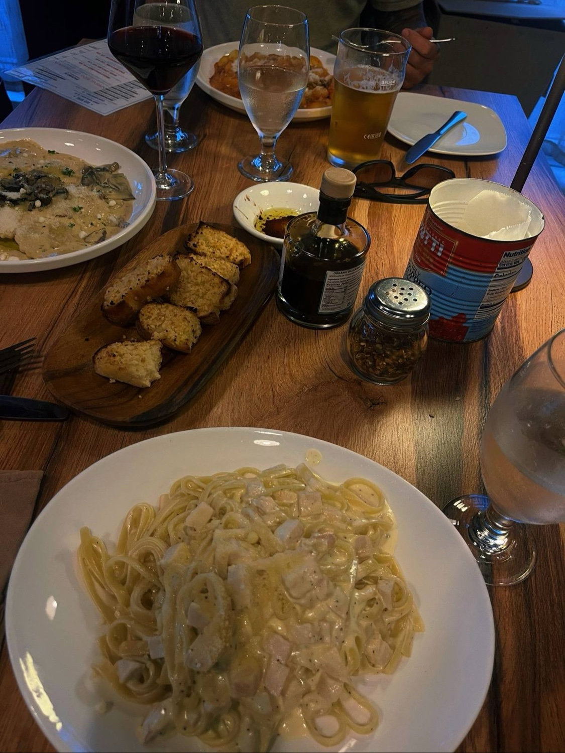 Read moreit was a nice and cozy experience ! the place felt like you were eating at your nonna’s house in Italy (i dont even live in Italy but now i know how it feels like bc of this place). the people serving us were incredibly nice and always made sure that we were comfortable and enjoying the food. they’re heartwarming soul just made we want to go back already. but do not start on me with the food !! OMG THE FOOD IS WAS IMPECCABLE. ive never experienced so many different flavors in one bite of having their truffle ravioli. i still dream about it. it’s a mix of a flavorful truffle with a light taste of mushrooms and cheesiness. if you don’t like mushrooms OR cheese, think again. bc that dish will make you fall in love with something you’d never think of falling in love with. the ravioli was perfectly cooked. and the fettuccine Alfredo with chicken was perfection. the most perfect amount of cheese, butter, and creaminess. the chicken was also a good choice to put in there. tender, flavorful, and so classic. not to mention, the garlic bread is literally garlic ON bread. but it’s crispy, soft, and amazing if you mix in the balsamic vinegar with the olive oil and then dip the bread in there 😋 i could give 10 stars if i wanted to. i wish the best for the italian owners of the place and please go there to try it for yourself. i promise, you will not regret gaining those 2 pounds...