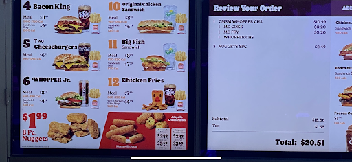 Read moreI ordered 3 of the 8 piece nuggets for my daughter and her friend as well as a whopper combo and an extra medium fries. The menu board said the 8 piece nuggets were $1.99 but on the price board is showed $2.49. I let the lady know she was charging me too much. He reply was “no, $2.49 is how much they are”. I said you’re advertising them at $1.99 and she said that the other side shows $2.49 so it’s too bad and that’s how much they are. Now I’m upset, not about the $1.50 difference but about her attitude and the principle of it in general. When paying I asked again and she said it’s too bad because that’s how much they are. I spoke to the so called general manager who did nothing. She also said that $2.49 is the price and that’s what I had to pay. I said she needs to take the $1.99 advertised price off of there because to someone that could be a difference enough to matter. She looked right through me and said no she doesn’t. To top it all off when I get home they only gave me 1 of the orders of fries when I should have had 2! One for the combo and one I ordered on extra. I tried calling just to tell them about it and the number online does not work. Now, I am completely aware that $1.50 is not a very big deal but it’s the attitude from the employees and the overall point of the situation. I have a picture of the price board and what I was charged. I wish I had audio of them telling me too bad and if I want them I have to pay the $2.49. Just a side note, this picture was before I ordered the extra fries so it doesn’t show them yet. I took it as they were arguing with me about it then I ordered the extra fries. I assure you that I DID pay for them but...