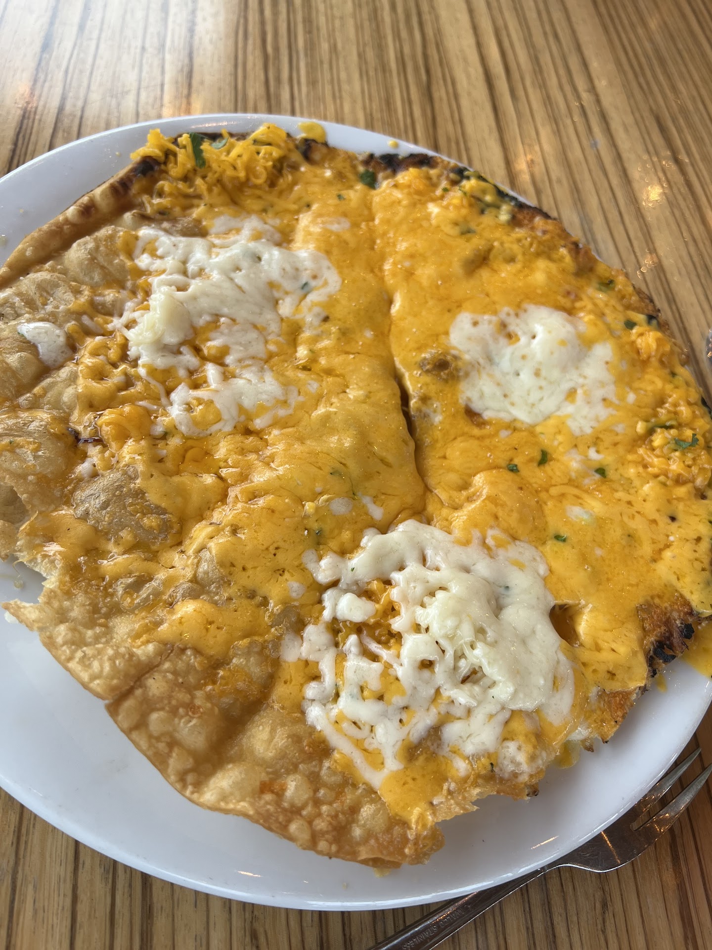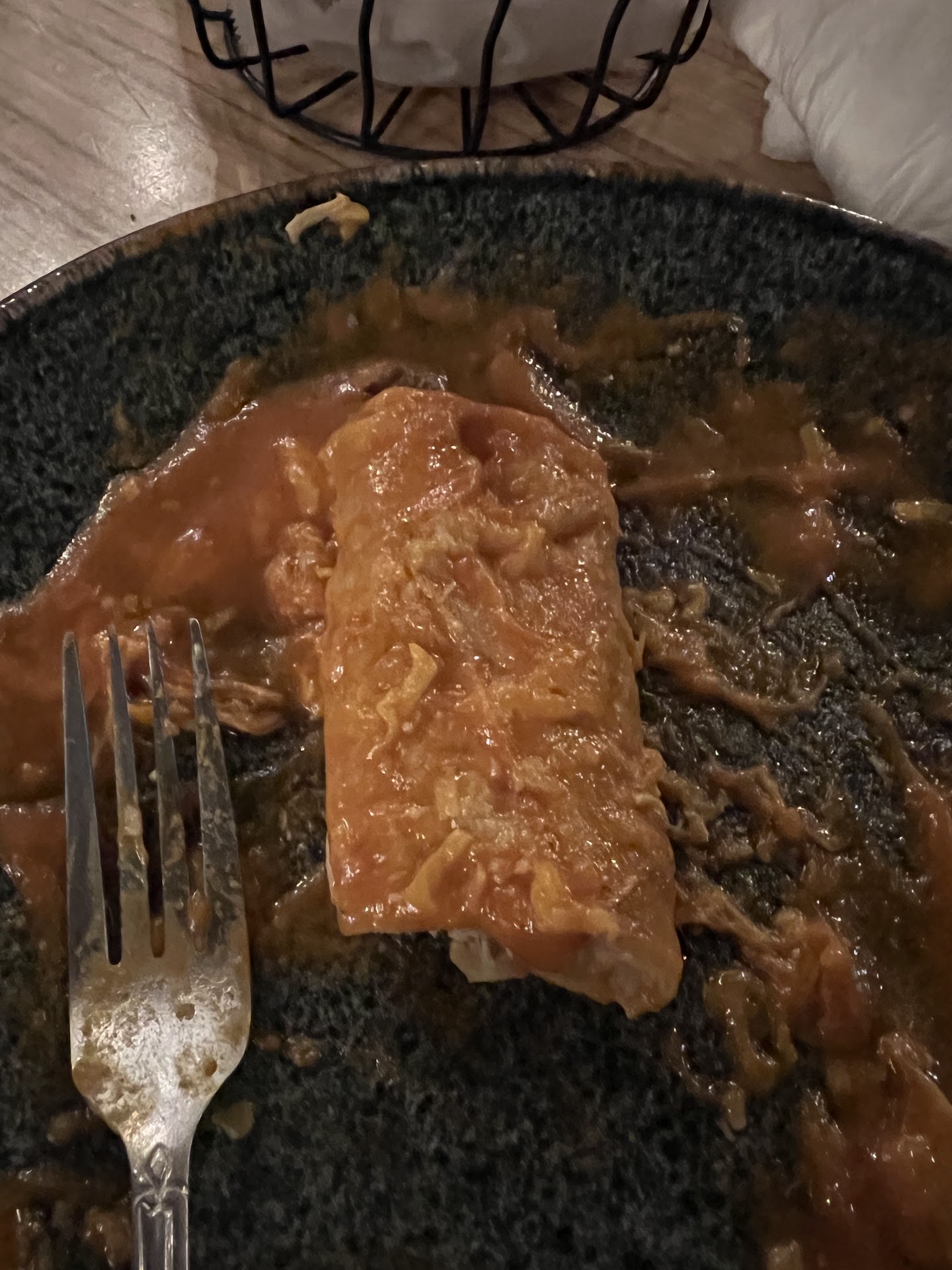 I started with a green juice, which was fresh and flavorful, it took a little while to arrive, but the quality made it worth the wait. For my main dish, I had the chipotle cream chilaquiles with arrachera. Unfortunately, something was off with the chilaquiles they had an unpleasant smell, almost like feet or a dirty rag, and the taste was similarly unappealing. I couldn’t finish them, but the arrachera, which I paid extra for, was okay.