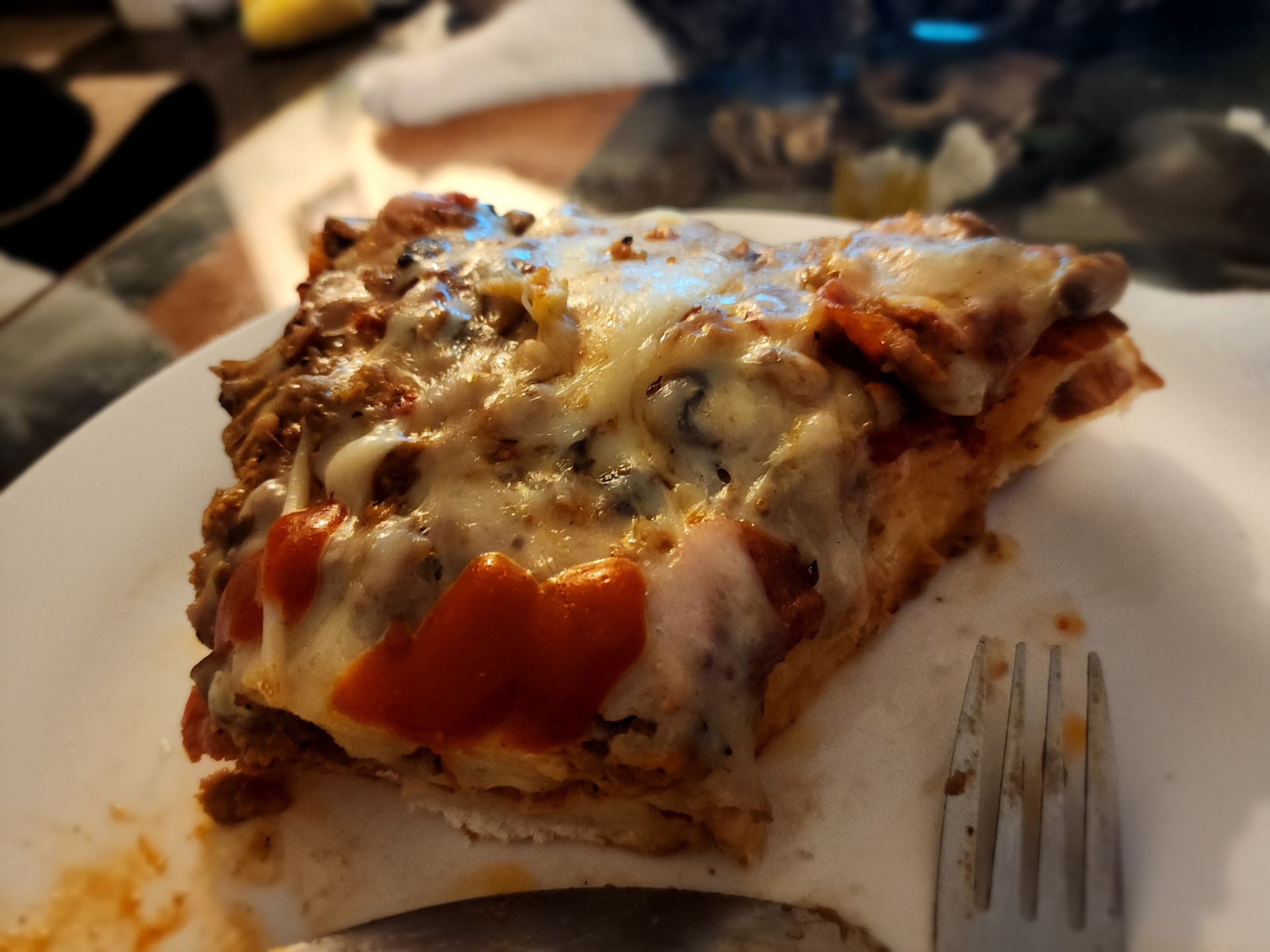 The lasagna was bland and watery tasting. It tasted like lasagna pasta was overcooked in unsalted water. The only flavor that really jumped out at me was basil. So it tasted like watery basil. I'm guessing it was shipped in frozen.