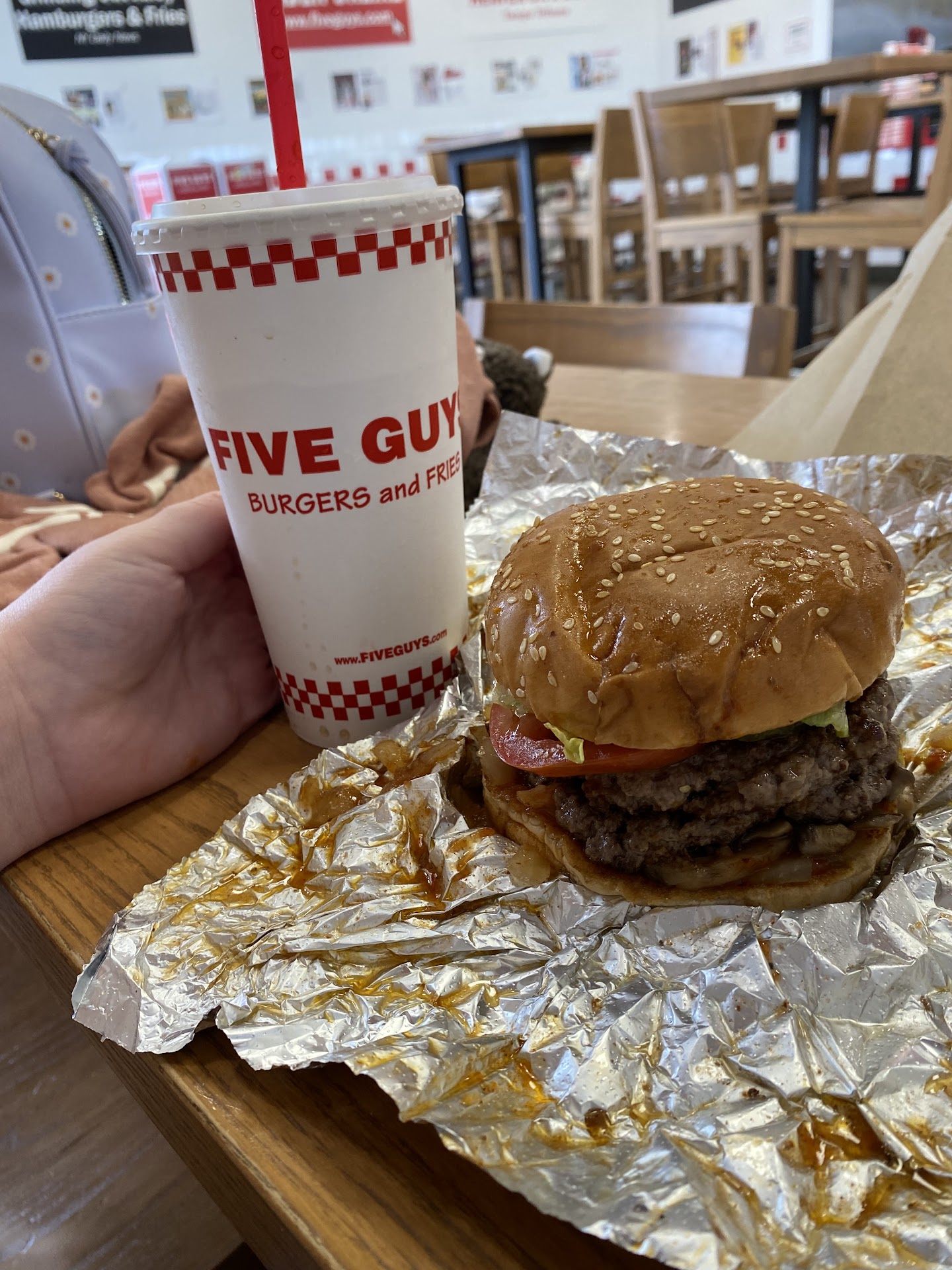Read moreMy wife and I dined in, sat out doors because it was a beautiful day. The employees were awesome, the food was good and the fountain is one of those touch screens with all of the different drink options so this is definitely the place to be. The burgers are big, the fries are outrageous, you'll want a small order if its just you, regular if its 2 people, by no means should you get the large order. Guys, this is the perfect place to take your lady, if you have one. There will always be a ton of fries because the just dump a lot in the bag, that way your lady that didn't want fries can have some too. 10/10 will go to another 5 guys and will recommend to...
