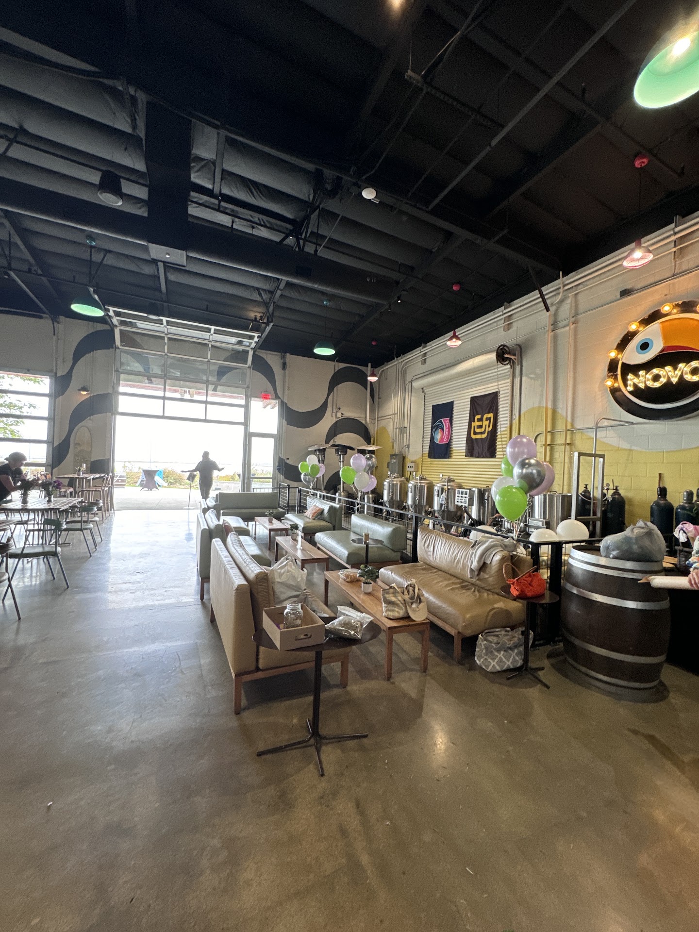I was just at Novo brewery yesterday, Sunday June 2nd for my sister's baby shower! It was a pretty big event, so l didn't think to check in or write a review while we were there, but I figured now that I've travelled back home and have time, it's worth mentioning how great this place is! It's a very large space, my sister's reserved section for over 60 people only took up about one third of the entire indoor area, plus they set up and outside area for us to have as well! I didn't eat very much while I was there but I did order some fries and they were delicious. I don't drink, but everyone around me was thoroughly enjoying the beers! Most notably though, I want to mention how absolutely amazing the staff was! Isaac was our section's server (for the most part) and they were the most helpful, friendly, quick and attentive person on a service staff that l've seen in a long long time. Isaac is VERY good at their job! Before we left and were packing everything up, Isaac came over to thank us for being such a great group (it got just a tiny bit rowdy with some of the partygoers in our group, what with all the booze and games we were playing) so that was really kind of to say! This spot is top notch, truly! Personally I wasn't a huge fan of the extremely loud Christian rock music coming from the Sunday service church building next door, but that's ok, and it's no fault of the brewery's! Absolutely Novo is a 10/10. And...