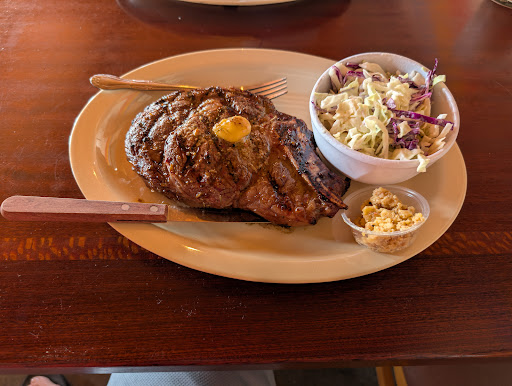 Came here for lunch with my best friend. The drinks that we got were good and when I ordered the steak it said it was at "market price" and I didn't ask what it would cost but I ordered it 10 minutes after, That's when the waitress realized she never asked me how I wanted it and I said medium rare. The steak was very rare. I was highly disappointed in the fact that they charged $45 for a steak cooked in a way that I did not like that was bone-in and just came with coleslaw. They did offer fries for free while we were waiting at least 25 minutes for our food to come even though it was dead and the fries were all right. When the waitress asked me if I like the steak I said no and that I would never enjoy a steak for $45 based on how it was cooked and how grisly it was. Usually I tip somebody at least 20% even if I find the food or service to be subpar. But in 2025 I refuse to overpay for something and tip at my standard. The men's room was very clean but the customer service was very poor from the waitress and there was people that came in after us that got their food before us. My friend's ribs were much better and cost $20 less. Take caution. This is a fair review because of the pros and cons...