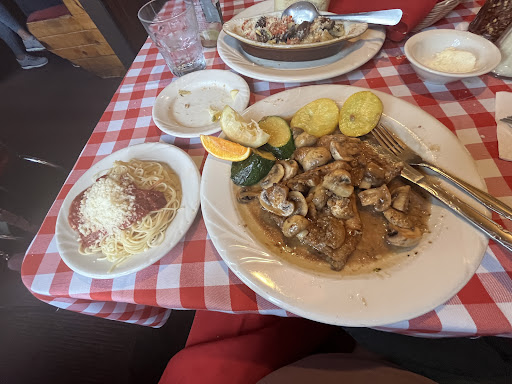 Not impressive, place is old, dated, could use an upgrade and remodel. Food was unremarkable, service was poor. I’ve been going there when visiting the area, for over 40 years, since I was a teenager. Haven’t been there for about 10 years now. Seems like something has changed. Or maybe my palate has been influenced by the Michelin restaurants I’ve been to over the years. The artichoke appetizer tasted very bland, not recommended. It tasted like artichokes from a jar mixed with mushrooms & roasted red peppers that may have been freshly roasted, some breadcrumbs and heated under a broiler. Very bland, heavy on the artichoke marinade. Chicken Marsala was “sweet”, poorly executed. Tasted like the sauce was made separately without incorporating the chicken flavor, no hints of garlic flavor at all. I’ve cooked this at home so I know what it should taste like, with notes of garlic & herbs. Mostly the Marsala flavor was too strong, perhaps not cooked enough, I could only guess that maybe the sauce was prepared separately from the chicken and mushrooms. The lady serving was very sweet, but she seemed inexperienced. She didn’t explain what was included with my meal so I had to ask after she returned with my drink and update the order. Like she didn’t even know whether I wanted soup or salad. 🤷🏼‍♀️ I’m not sure if I’ll go back there anymore. It’s not worth it. I did like the little candies included with the check. Best of luck.