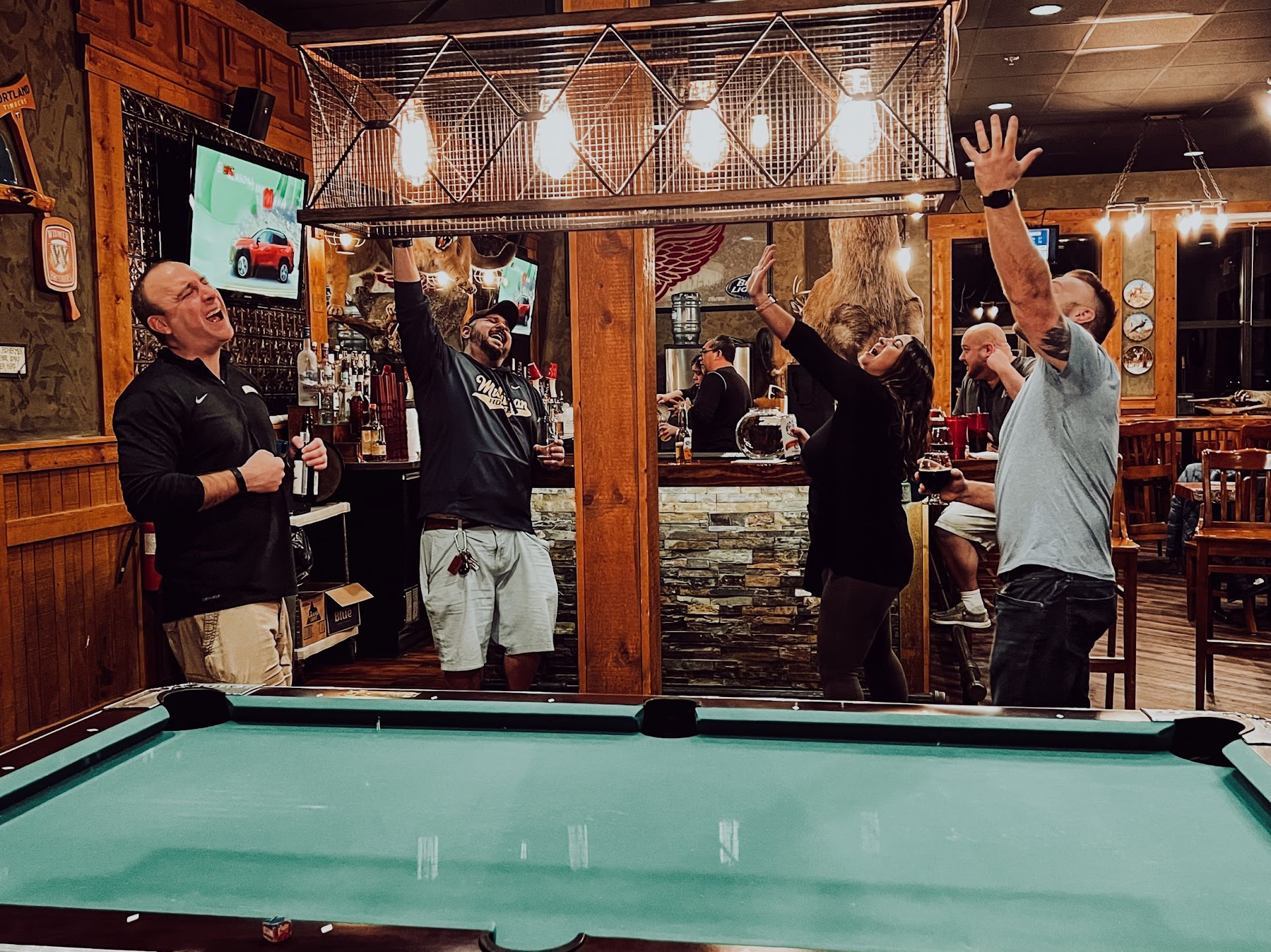 Came here for a grad party and several of their staff were wildly inappropriate with how they treated us, and more specifically our children. The heavy set man with long curly hair literally made my two year old son cry after ripping the pool balls away when he was rolling them around on the table. He wasn’t hurting anybody or anything, it was truly uncalled for. We, a group of 4-6 adults, then took the kids outside to the empty patio (it was drizzling) to let them run around without bothering any of the other patrons inside. A waitress came out and told us (grown adults) we were no longer allowed to be out there because the kids were playing on the out door furniture. It’s worth noting that nothing was actually broken at any point, but we complied nonetheless. We came back into the restaurant and the kids went back to the pool table. Mind you, the pool tables are part of the area we reserved, so we weren’t bothering anybody else. Once again, enter the heavy set man with curly hair to take the balls away from the children who aren’t hurting anybody or anything. All of this while 4 adults are literally standing around monitoring. When somebody said they wouldn’t be coming back because of the poor treatment, the man responded sarcastically about how upset he would be. It was remarkably unprofessional and childish. To make matters worse, somebody requested a manager at a certain point, and this man claimed he was the manager when in fact he wasn’t. I certainly won’t be coming back, but then again, they made it pretty clear that they don’t care.