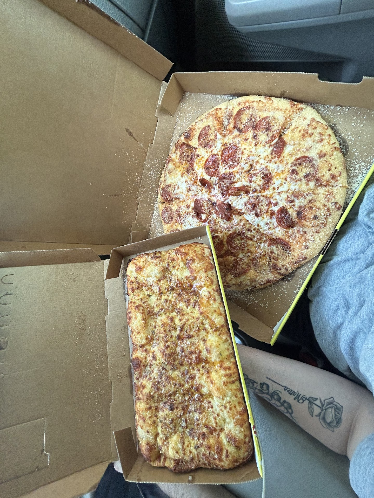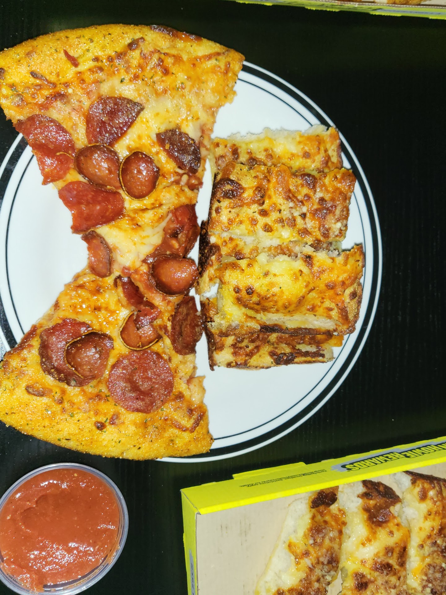 Read moreThis place sucks. Ordered cheese bread and a med pizza double pepperoni with flavored crust. What I got was burnt regular bread and a pizza with 7 pepperoni on it With no flavored crust. When I went back to get it corrected I Stood there waiting for a while when the cook finally came around and asked me if I needed help. I asked to talk to the person who put the quality control sticker on the boxes. when the manager finally came out from the back he asked me what was wrong and I explained it, he said the sticker just means there's a pizza in the box, not that it's right. And that he didn't appreciate my attitude. After waiting for 20 more min The manager sent the cook out to bring me the food. They did put the flavored crust on the old pizza and gave it back to me and also included a giant cookie for my troubles. It still makes me mad that a quality check here just means that they put...