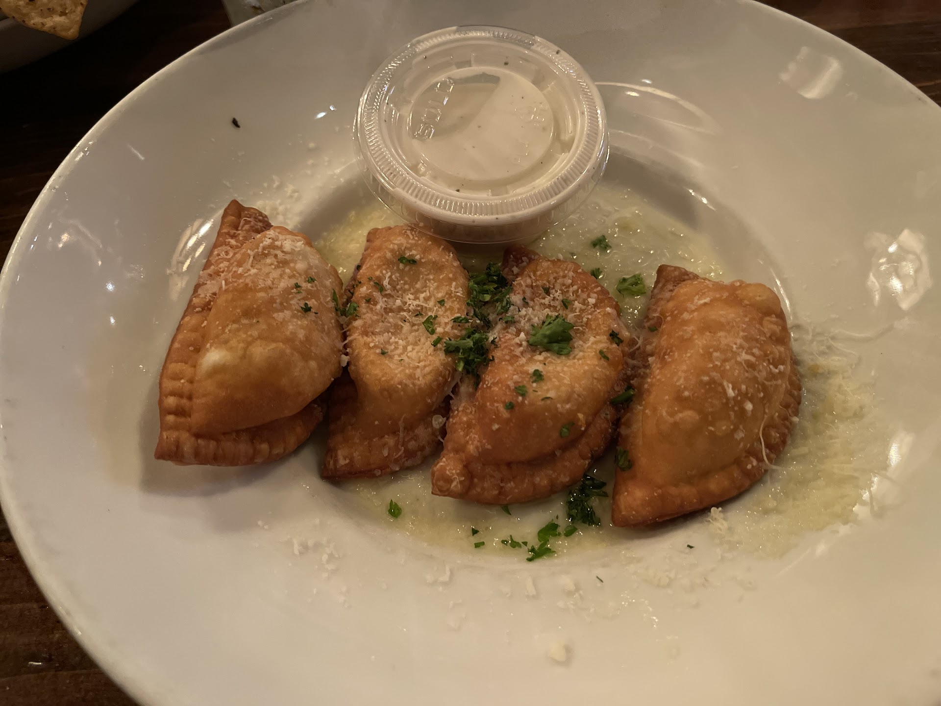 We did have a couple minor snafus with service; we were not given napkins/utensils till after our appetizer was finished (remember they were fried pickles), and though I declined a take-home box "for now" while I was still eating the salad, we didn't get another opportunity to ask for one - the waitress flew by to drop off and pick up the bill. [EDIT: our two subsequent have had waiters that went above and beyond. I'd redact any concerns about thorough, personal service].