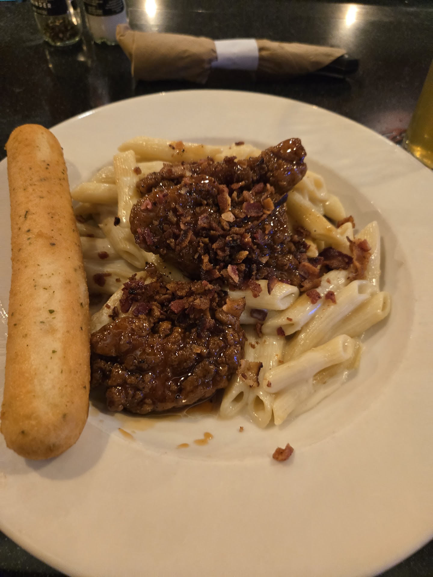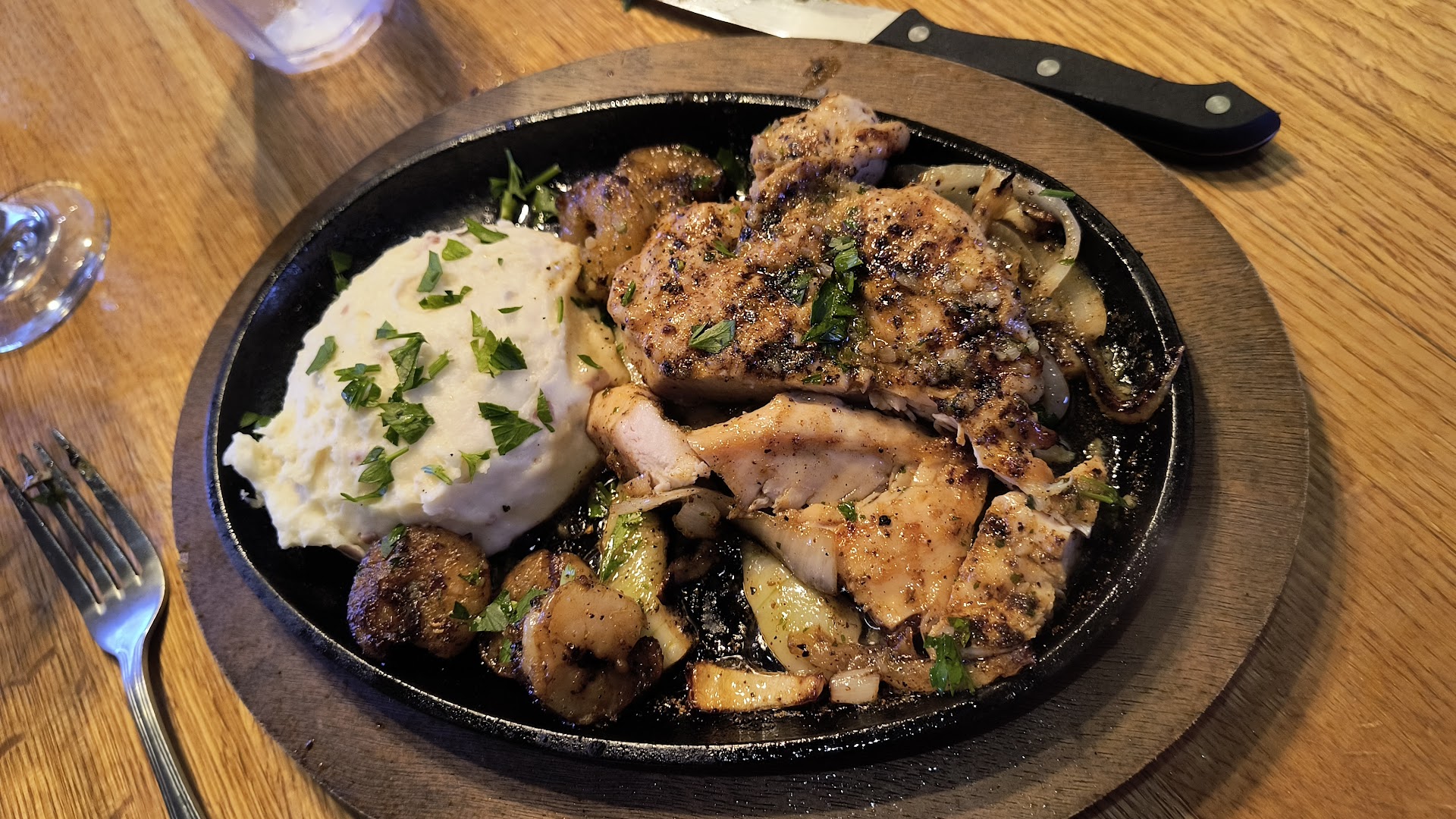No longer even a little bit fancy. The food was good but the service was just so-so at best. The waiter was polite and friendly. I get the feeling it wasn't his fault. But it took more than an hour for our food to come out to our table. We stopped in to celebrate my son's high school graduation on a Saturday just after 1pm. The restaurant was 30% full at most including my group. By the time we left it was still less than half full. Our group of five was promptly greated and seated in a nice large corner booth. It was acceptably clean. We had our drink orders taken right away and the waiter returned with them and proceeded to take our food orders. Pretty standard everywhere. We ordered nothing special, with no special instructions to remove or add anything except requesting the quesadilla sauce on the side. Two whiskey bacon cheeseburgers off their two for $28 menu, an Oriental salad, a quesadilla burger and my hard to please daughter ordered a sampler appetizer as her entree. The waiter took quite a long time to return and when he finally did it was only to tell us the kitchen is "now sending out" food orders again and your items will be out shortly. He said they were focused on all their large parties. My vision is pretty good still, i saw two, maybe three parties of six to eight people. There were no larger parties. The place just wasn't very busy. No one told us the kitchen had been closed for food. I get they were probably short staffed.. its tough to find good help these days.. couldn't you have just told someone it was going to take longer than usual? Maybe this is the usual here? Anyhow, when the food eventually arrived it was pretty good. Three different waiters brought it out to us. They were probably all bored. But I'll certainly hit a different Applebees next time the mood strikes. I'm not a stick in the mud or blue hair, I've seen it all and not been offended but I wouldn't bring my family here again. The bathroom was pretty dirty. I checked the sheet on the back of the door where the employees sign and date when they've cleaned the restroom. It was regularly filled out - prior to the last four missed checks. It definitely looked like it hadn't been cleaned in a couple of days. Honestly the similarity of all the handwriting on that sheet made me think they likely check it once every couple days and sign for three checks a day all at once, so if a patron like me sees the sheet he is fooled into thinking they regularly check. Only you can't fool this guy that easy. At least use multiple pens or different handwriting. This Applebees also had people openly smoking weed in the parking lot. Dancing around like idiots. That's why they call it dope btw. It was early on Saturday afternoon. Maybe not the restaurants fault, but again not somewhere I can recommend to anyone either. If that's your scene, i don't judge and this could be the place for you. Just make sure you've got plenty of free time if you plan on ordering food. And you probably will get the munchies if you spend any time in the...