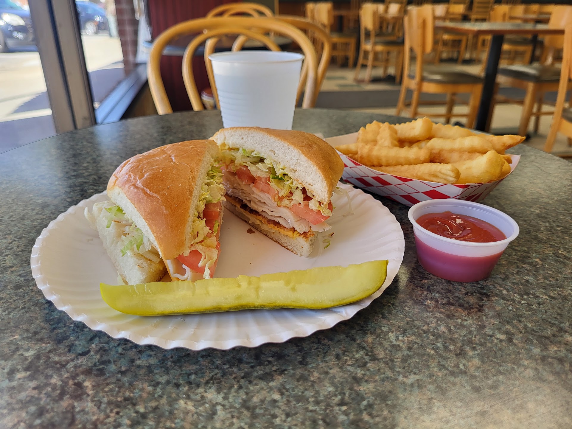 During a stop-over in Independence MO to see the Harry Truman home ... we meandered around the town square area to find a bite to eat. Based on ratings and looking for a relaxed setting ... we decided to try Dave's. It was a 100% correct decision. The food (cheeseburger and salmon sandwich with fries and fried pickles) was excellent and prepared "just right". For a relatively small casual restaurant ... they have an incredible variety of entrées and delicious-looking bakery items.