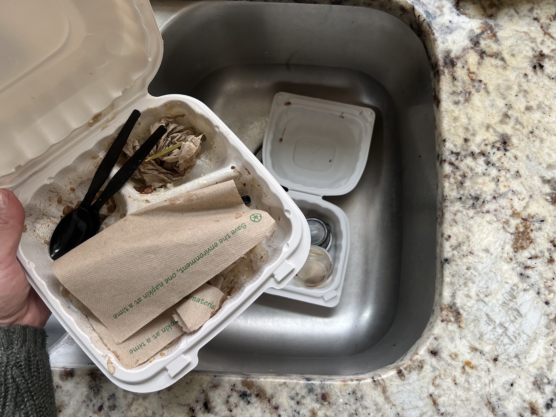 So this picture is of us having to carry out all our dirty dishes to take home and clean, compost and recycle. Not super fun to carry all that when you have a...