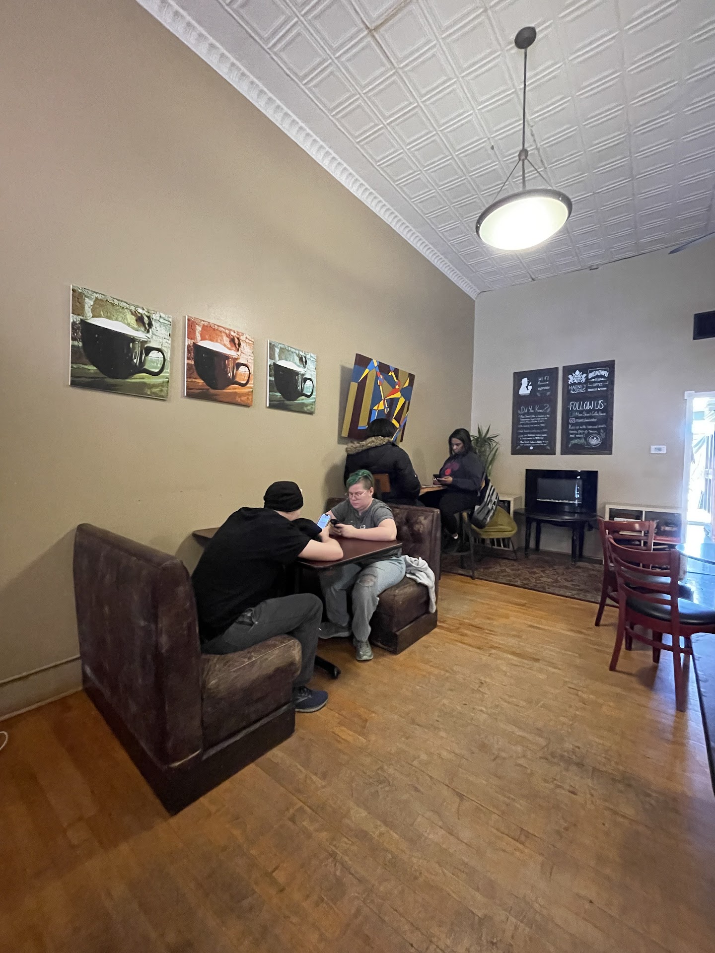 Ā Ā Ā Read moreIf I'm goin to Independence... Main Street Coffee House is certainly a great reason I leave an extra 45 minutes early to wherever. Walk thru the door... just step'n on & into the historic original old Oak floors & mixed with brick walls. YET, for all the "antique"... I was impressed how thoroughly beyond clean with coffee bean & fresh baked pastrie dough fragramce... my OCD was relaxed also... LoL! Cozy & hip & friemdly... will take U to relax & ponder over days in time. Overlook'n the square... I've seen ga-zillion times... still imagine what Mr. TRUMAN {before it was Mr. PRES} would order on his early a.m. walks. Bet it was coffee BLACK like a "real soldier man of his time" {NO RESIST'n a splash of flavour oils... tee hee} $$$$ NOW U'LL WANNA KNOW ... DELISH DISHES: Quiches... Chic Salad sam'ich piled so hi & made like Gma, except not on Wonder White Bread. U got choice. My Fav is on a bagel... not stale or hard as other Shoppe's try... Apple Bacon on it ALL! $$$$ YES... for approx $5!!! I think the Club it almost $6. ANYWHO... the coffee & teas are absolutely fab as well. I'm not much for a pot every morn'n. U don't wanna miss the skill & care in every cup. This is NOT a "fast food" dive. Staff is very good... in no way "slow service"... Ur purchase isn't tossed at U... that extra second they put into grinding, blending, prep & service of Ur food &/or drink... is best U've had for long time... maybe in this day & age crazy world. PlZ REMEM... LEAVE EARLY NEXT TIME UR COMPASS POINTS NEAR INDEPENDENCE SQUARE ~ MAIN STREET...